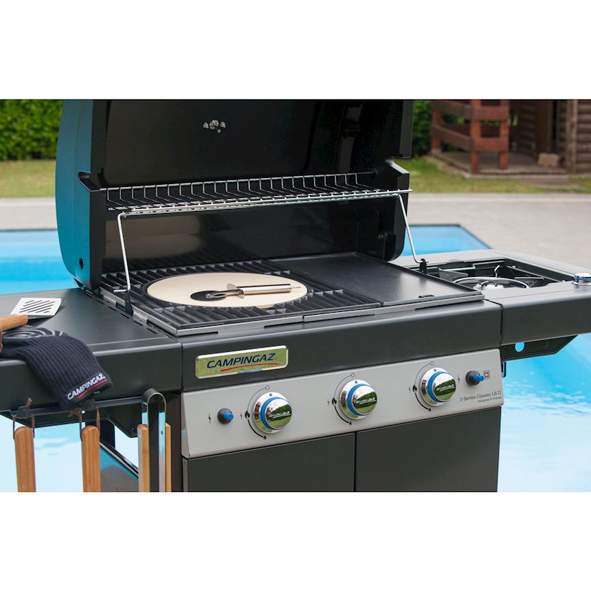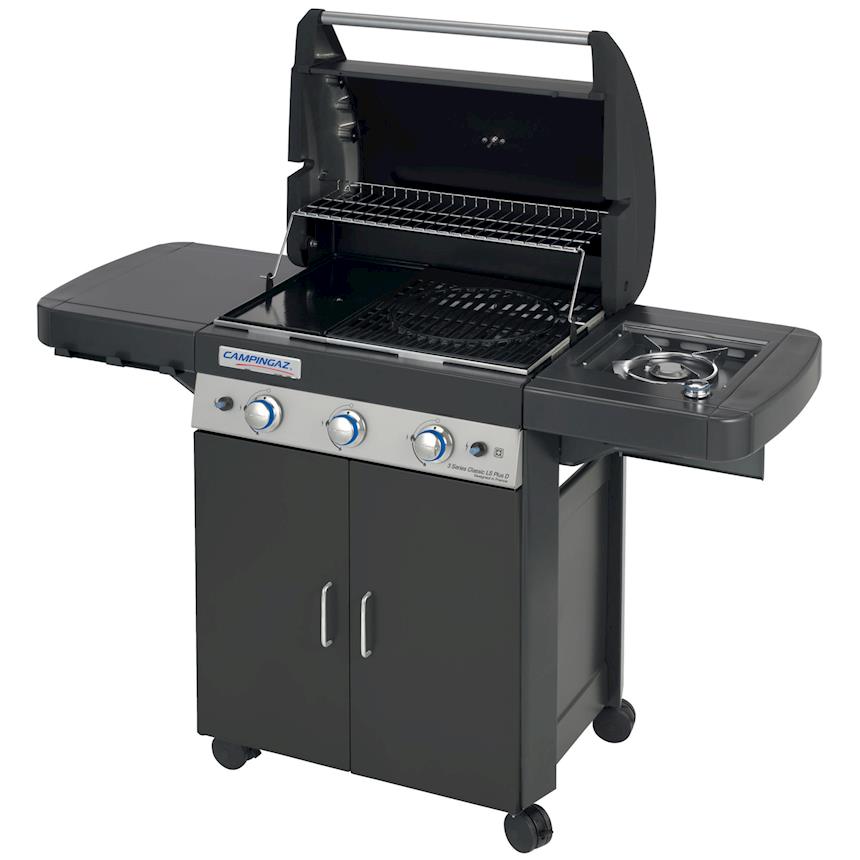 Plynový gril s tromi rúrkovými horákmi z nerezu a postranným horákom napríklad na prípravu omáčok a príloh. Grilovacia plocha je rozdelená na liatinový obojstranný tál a rošt Culinary Modular pre jednoduchú prípravu pizze, marinované hydiny, paelly alebo ázijských pokrmov na panvici wok. InstaClean systém umožňuje vybratie jednotlivých dielov grilovacej vane a ich umývanie v umývačke. Pomocou ovládacích gombíkov a teplomeru možno pohodlne regulovať teplotu. Obsahuje predné dvierka a úložný priestor. Piezo zapaľovanie. Vyklápací rošt pre pozvoľné grilovanie a ohrievanie. 2 bočné stolíky, z toho jeden sklopný.