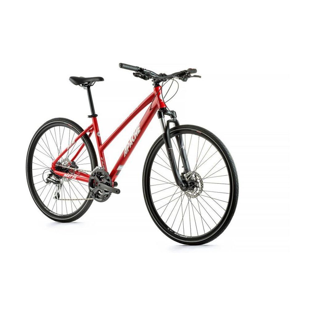 Apache Matta A3 je dámsky krosový bicykel s hlinikovým rámom, kolesami s priemerom 28 palcov, odpruženou vidlicou a pohonom 3x8.