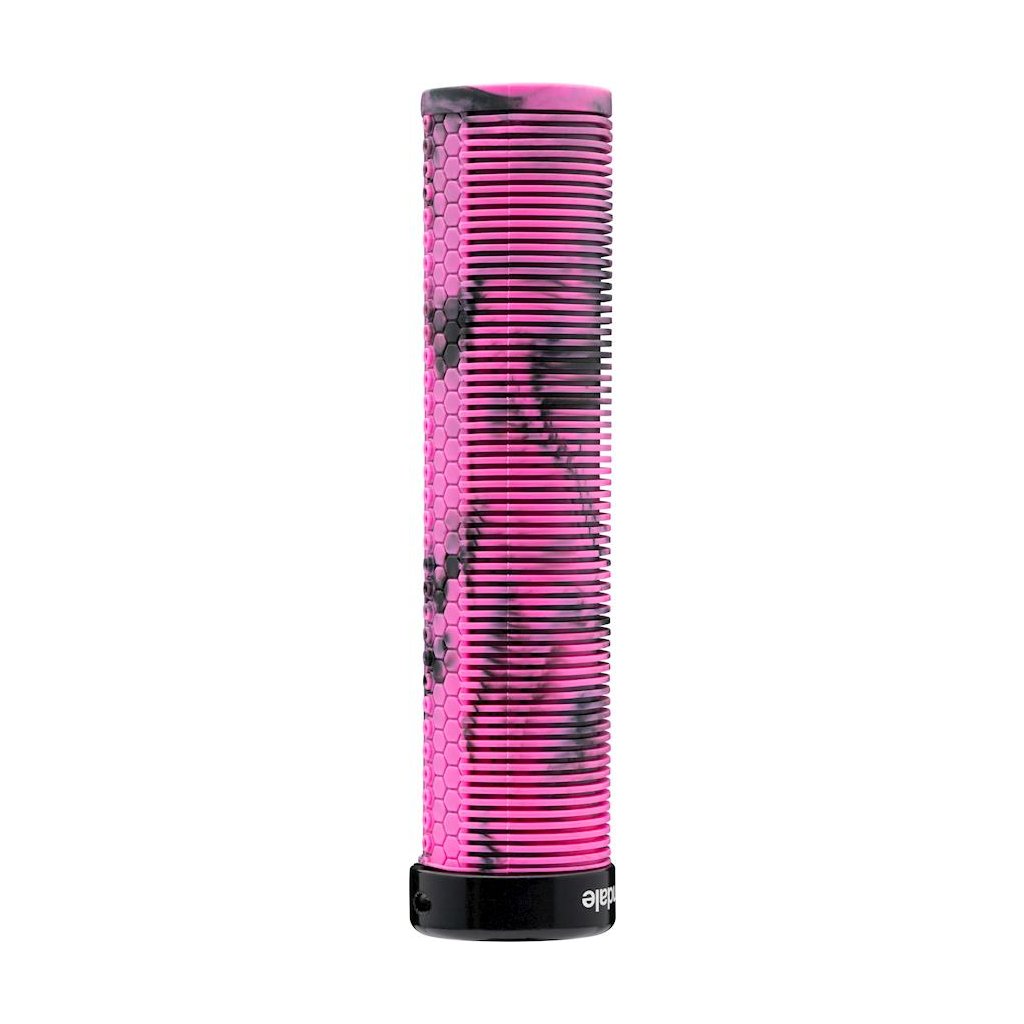 A straight profile, lock-on grip that combines a ribbed, mushroom pattern on the palm side for comfort, and hex-pattern on the underside for grip.