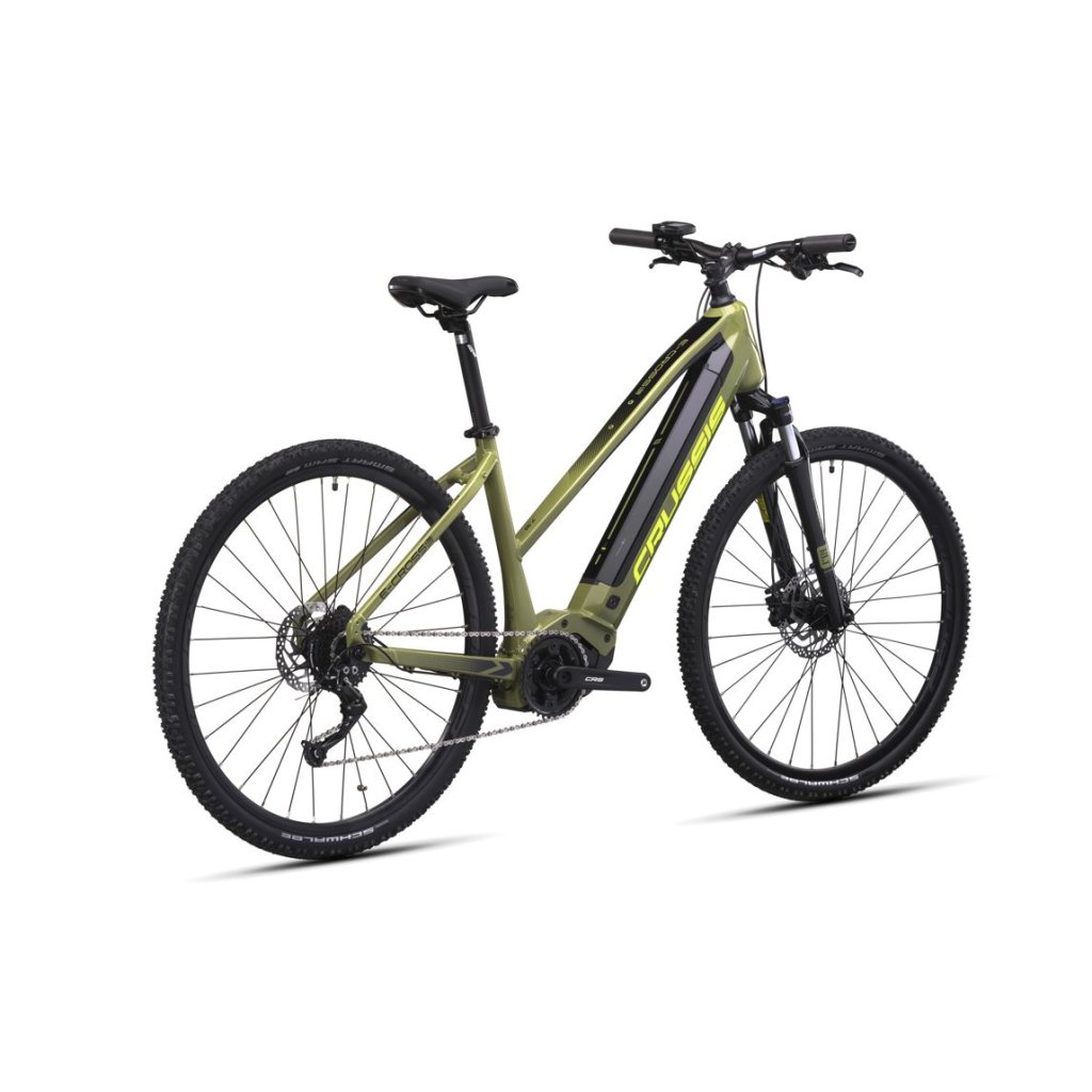 Objavte elektrobicykel s nízkym nástupom e-Cross Low 7.10-(720 Wh): Spojenie elegancie a výkonu! nielen jednoduché nastupovanie, ale aj komfortnú a štýlovú jazdu. Jeho moderný zeleno-čierny dizajn so žltými akcentmi nielen upúta pozornosť, ale tiež poskytne elegantný vzhľad na každom výlete. batérií Li-Ion 36V/720 Wh (20 Ah) a dojazdom až 170 km si môžete užiť výlety bez obáv o vybití batérie. Tento model je vybavený farebným LCD displejom PANASONIC, ktorý vám poskytuje jasné a ľahko čitateľné informácie o stave batérie a ďalších kľúčových údajoch. Sam 28" a vidlica SUNTOUR NEX HLO DS 700c zaisťujú vynikajúce pohodlie a trakciu na rôznych typoch povrchov. Elektrobicykel e-Cross Low 7.10-(720 Wh) ponúka viac než len jazdu - je to zážitok. Spája elegantný dizajn s pokročilou technológiou a výkonom, ktorý privedie vaše cykly. horizonty a objavte svet elektrobicyklov s týmto výnimočným modelom.