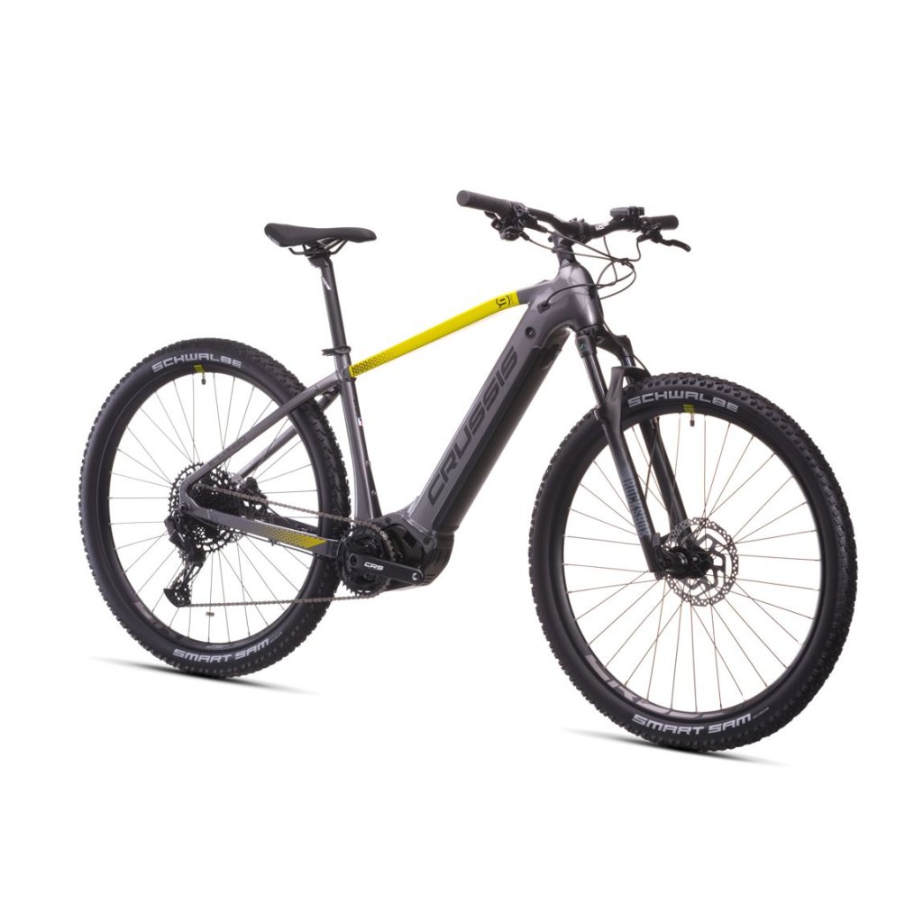 CRUSSIS e-Largo 9.11: Dlhé trasy? Ťažký terén? Žiadny problém! e-Largo 9.11 je stroj pre jazdcov, ktorí sa neboja výziev – ani v dĺžke trasy, ani v náročnosti terénu. Vďaka pevnému hliníkovému rámu padne ako uliate cyklistom, ktorí chcú maximálnu stabilitu, pohodlie a efektivitu šliapania. Srdcom elektrobicykla je výkonný stredový motor PANASONIC GX Ultimate o sile 95 Nm. Ten prenáša silu presne podľa tvojho štýlu jazdy - plynulo, citlivo a bez zbytočného prerušovania. Ideálna do kopcov, pre dlhšie trasy aj svižnejšiu športovú jazdu. Úplnú slobodu prináša integrovaná batéria LG Li-Ion 894 Wh (22,85 Ah) s dojazdom až 200 km. Vďaka plášťom SCHWALBE SMART SAM Performance prejde elektrobicykel terén hladko a efektívne – zvládne korene, štrk aj lesné cesty s väčšou istotou a menšou námahou. K tomu odpružená vidlica ROCKSHOX FS Judy Silver TK Solo Air so zdvihom 100 mm, ktorá tlmí nerovnosti a prispieva k vyššiemu komfortu aj kontrole. Farebný displej PANASONIC s intuitívnym ovládačom na riadidlách dáva prehľad o asistencii, stave batérie, rýchlosti a ďalších údajoch – ľahko a prehľadne, za jazdy aj pri zastávke. Nechýbajú ani hydraulické kotúčové brzdy SHIMANO Deore, ktoré zvládnu prudké zjazdy aj nečakané brzdenie na mokrej tráve alebo v kamenistom koryte. CRUSSIS e-Largo 9.11 je spoľahlivý parťák pre jazdcov, ktorí hľadajú výkonný horský elektrobicykel s dlhou výdržou, robustnou konštrukciou a komfortnou geometriou pre celodenné dobrodružstvo – od ranného výjazdu až po večerný návrat.