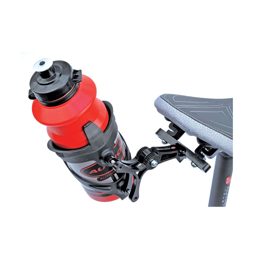 Držiak pre dva košíky s nastaviteľným uhlom, uchytenie na vzpery sedla, hmotnosť 123g.