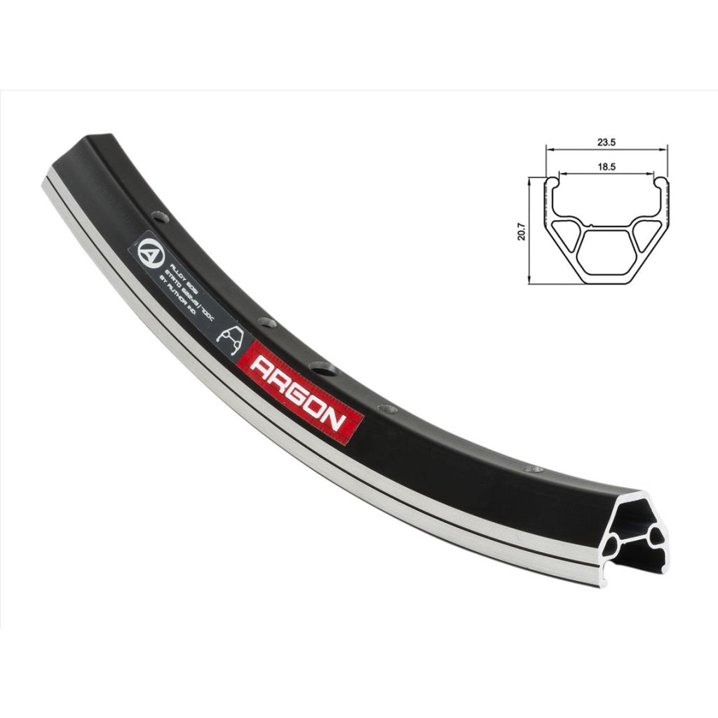 Dvojstenný ráfik, 32 dier pre lúče, profil z materiálu AL6061H-T6 spojený kolíky, hmotnosť 490g, ERD 534mm, CNC obrábané boky, otvor pre AV auto ventil.