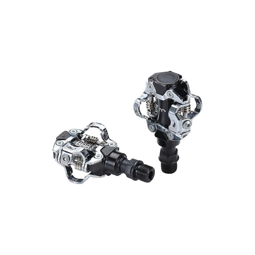 SPD kompatibilné MTB pedále. Nastaviteľná vôľa pedála. Silné hliníkové telo. Odolné guličkové ložiská. Kufre súčasťou.