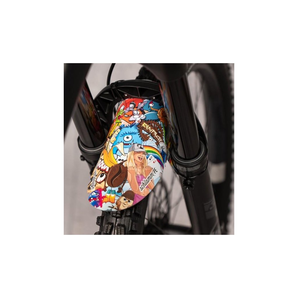 Jednoduchý a funkčný blatníček na vidlicu a zadnú stavbu v cool dizajne Rie:sel. Upevnenie pomocou sťahovacích pások, ktoré sú súčasťou balenia. Odolný proti poškriabaniu.