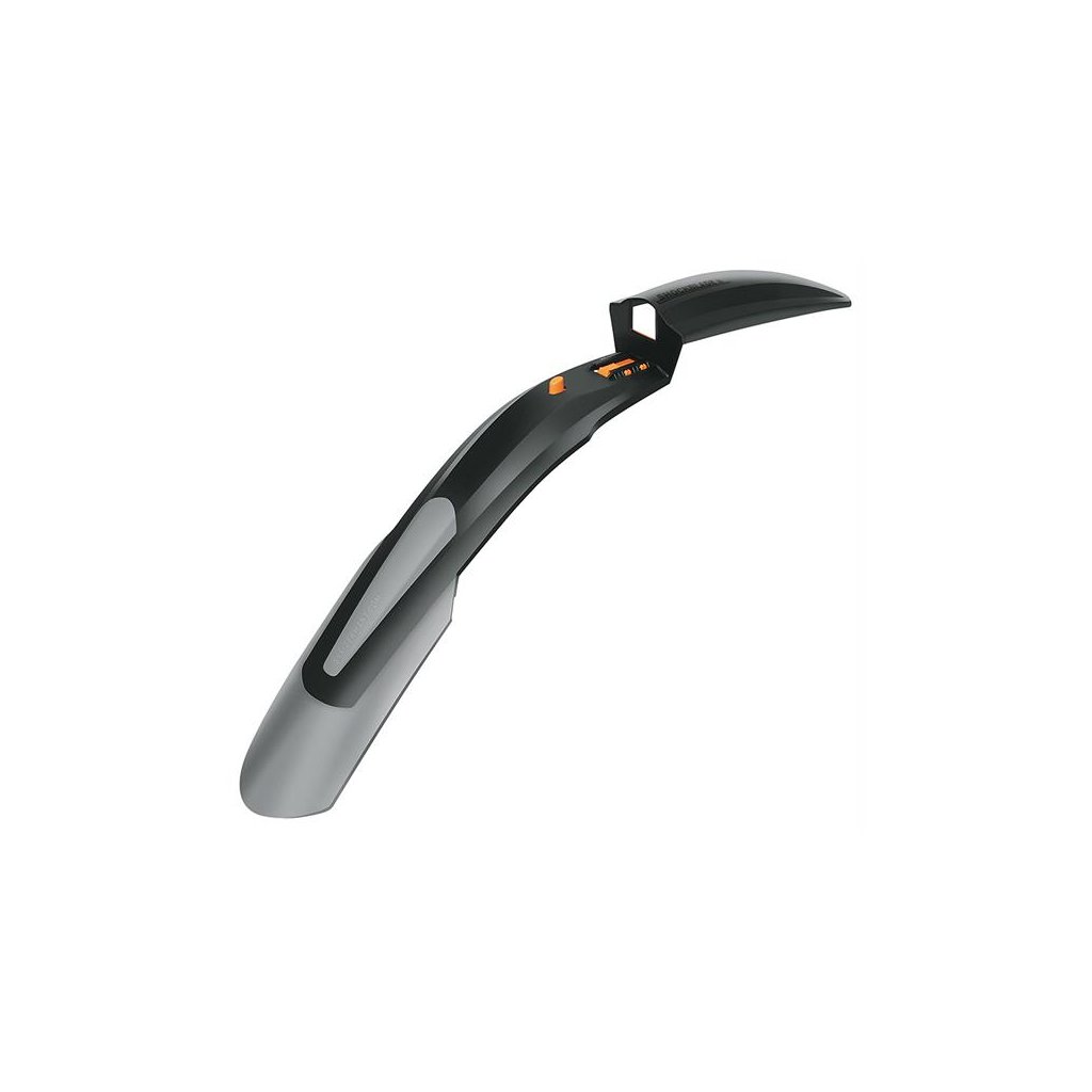 predný blatník na odpruženú vidlicu, pre kolesá 28 "- 29", šírka blatníka 100 mm, dĺžka blatníka 680 mm s gumovou lopatkou, pre všetky druhy vidlíc, vrátane redukcie na Tapered vidlicu, hmotnosť 112 g, materiál plast