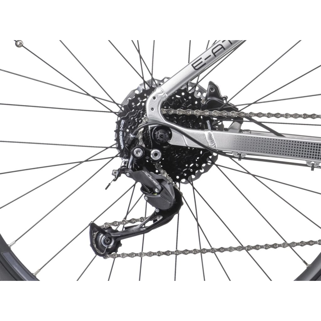 Vydajte sa na dobrodružstvo bez limitov s horským elektrobicyklom e-Atland 7.10-(900 Wh). Objavte nové horizonty s horským elektrobicyklom e-Atland 7.10-(900 Wh). S dostupnými veľkosťami rámu 17" a 19" je tento bicykel navrhnutý pre maximálne pohodlie a výkon v každom teréne. Jeho čistý strieborný dizajn nielenže zaujme, ale taktiež pridá vašej jazde nádych elegancie a jedinečnosti. O vašu bezpečnosť a kontrolu sa postarajú hydraulické brzdy SHIMANO BR-MT200, ktoré vám umožnia presné a spoľahlivé zastavenie aj v tých najnáročnejších podmienkach. Batéria Li-Ion 36V / 900 Wh (25 Ah) vám zaistí dojazd až 200 km, takže môžete bez obáv vyraziť na dlhšie trasy. So stredovým motorom PANASONIC GX Power Plus a jeho krútiacim momentom 75 Nm budete zdolávať kopce a horské chodníky s ľahkosťou. Plášte SCHWALBE SMART SAM Performance v spojení s vidlicou SUNTOUR XCM32 NLO DS 27,5" zaisťujú pohodlnú jazdu s vynikajúcou priľnavosťou na akomkoľvek povrchu. Vďaka farebnému LCD displeju PANASONIC máte všetky dôležité údaje o vašej jazde prehľadne na dosah ruky, zatiaľ čo prehadzovačka SHIMANO Alivio s 9 rýchlosťami vám umožní jednoducho prispôsobiť jazdu aktuálnym podmienkam.