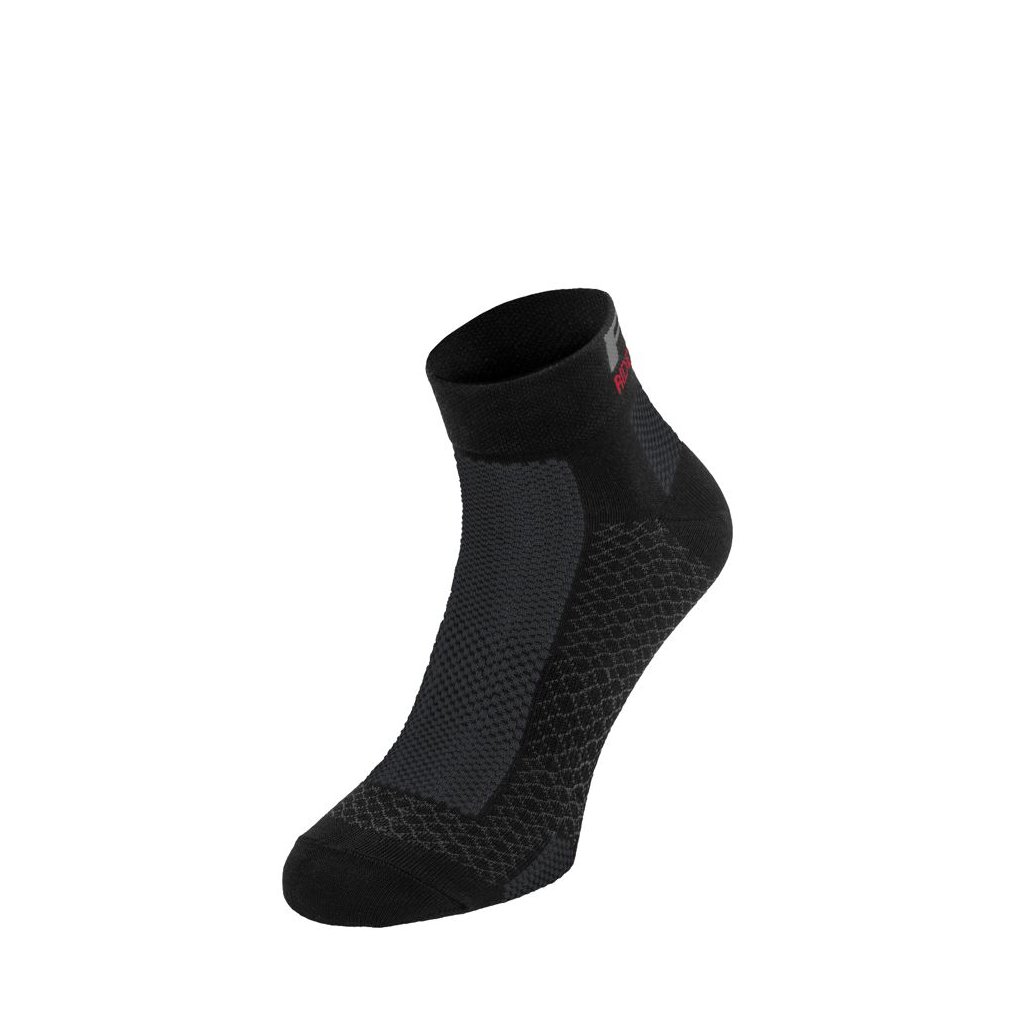 Základní cyklistická ponožka pro každodenní trénink. Vyrobeno z polyamidu: lehké a odolné. Odvětrávaná síťovina: cirkulace vzduchu. Vysoce prodyšný materiál. Chrání proti otlakům od obuvi (nárt) a od pedálů (chodidlo). Zesílení zátěžové partie kotníku a achilovky.