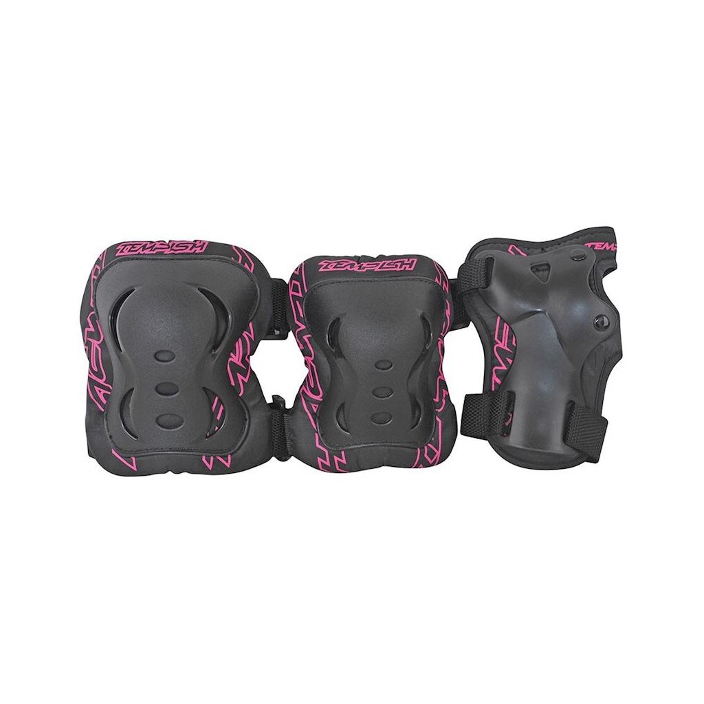 Univerzálna 3-sada chráničov na kolená, lakte a zápästia. Flexibilná konštrukcia chrániče a jeho plastové výstuhy veľmi pohodlne "padne" na chránenej časti tela. Sú veľmi ľahké a minimálne obmedzujú v pohybe. Vrchný materiál je odolný proti oteru. Vnútorný materiál výborne odvádza pot a vlhkosť z tela. Elastický materiál sa prispôsobuje podľa pohybu korčuliarov.