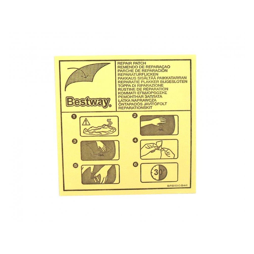 Záplaty samolepiace, 10 ks na karte v blistri. Vhodné na rýchlu opravu prepichnutých nafukovacích výrobkov - bazénov, lehátok, kruhov a podobne.
