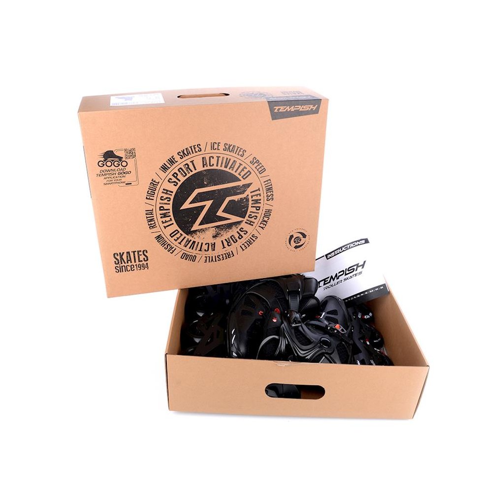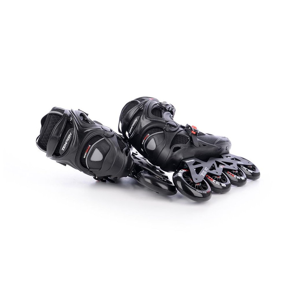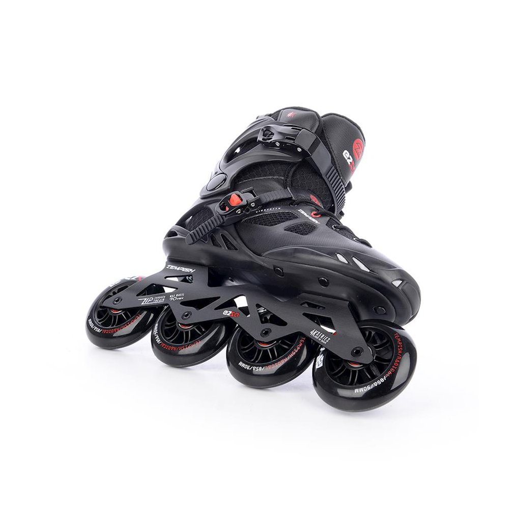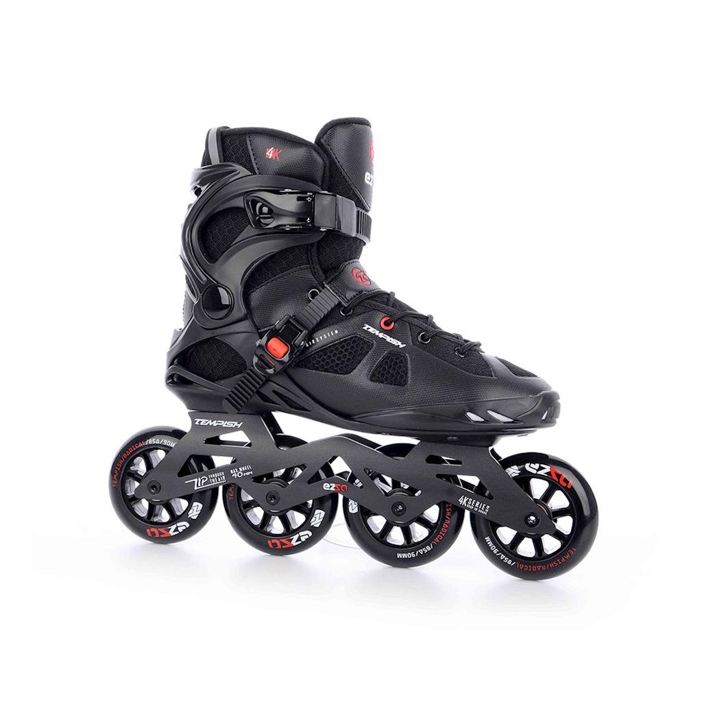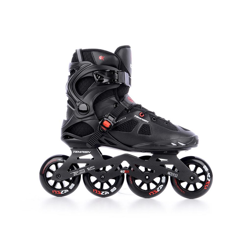U korčúľ je použitá TEMPISH brzda univerzálna „S“. Brzda je priložená v krabici spoločne so 4-mi skrutkami - veľmi jednoduchá montáž - bez nutnosti demontovať osky a kolieska. Materiál držiaka brzdy - nylon so skleným vláknom - veľmi tuhý a pevný, ktorý umožňuje nastaviť výšku polena. Materiál klátu TPR. Korčule EZZA 90 sú osadené kolieskami zo série RADICAL, PU casting (PUC), Super Hi-Rebound (SHR). Jedná sa o vysoko kvalitné kolieska s veľmi nízkym valivým odporom a dlhou životnosťou, ktoré dosahujú veľmi nízke opotrebenie na rôznych povrchoch a výborne tlmia nerovnosti povrchu čo zaručuje naozaj komfortnú jazdu. Kolieska sú osadené ložiskami ABEC 9 hi-precision s gumovou prachovkou. Šnurovanie je klasické šnúrkami. Cez priehlavok je umiestnený spevňujúci pásik s mikroprackou.