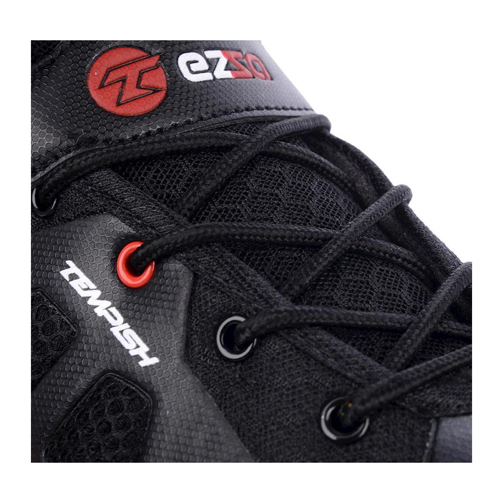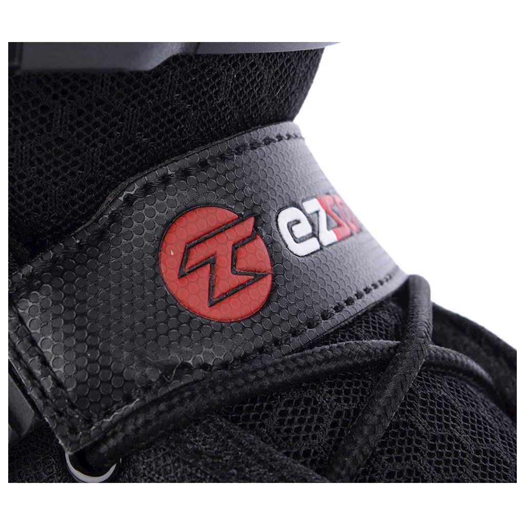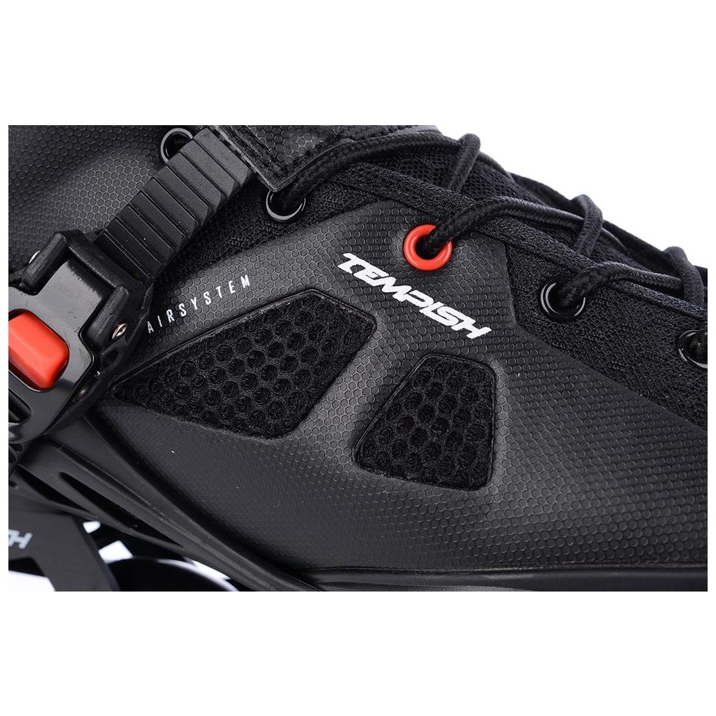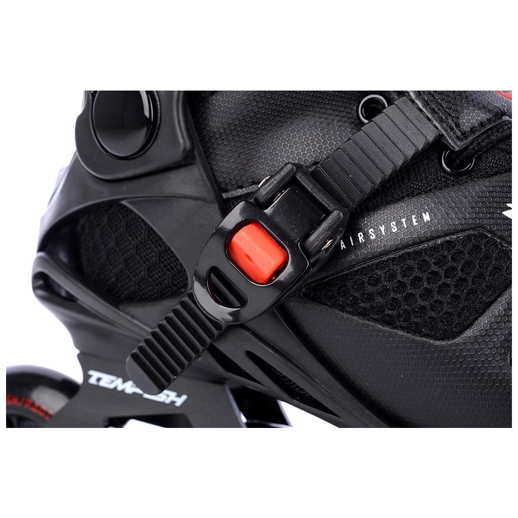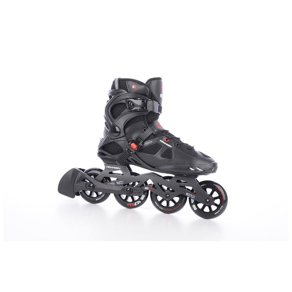 U korčúľ je použitá TEMPISH brzda univerzálna „S“. Brzda je priložená v krabici spoločne so 4-mi skrutkami - veľmi jednoduchá montáž - bez nutnosti demontovať osky a kolieska. Materiál držiaka brzdy - nylon so skleným vláknom - veľmi tuhý a pevný, ktorý umožňuje nastaviť výšku polena. Materiál klátu TPR. Korčule EZZA 90 sú osadené kolieskami zo série RADICAL, PU casting (PUC), Super Hi-Rebound (SHR). Jedná sa o vysoko kvalitné kolieska s veľmi nízkym valivým odporom a dlhou životnosťou, ktoré dosahujú veľmi nízke opotrebenie na rôznych povrchoch a výborne tlmia nerovnosti povrchu čo zaručuje naozaj komfortnú jazdu. Kolieska sú osadené ložiskami ABEC 9 hi-precision s gumovou prachovkou. Šnurovanie je klasické šnúrkami. Cez priehlavok je umiestnený spevňujúci pásik s mikroprackou.