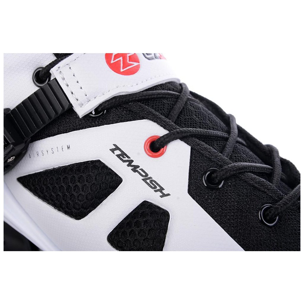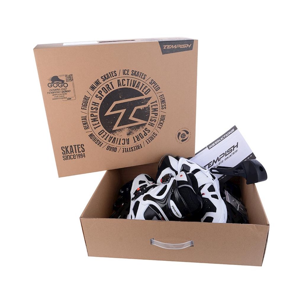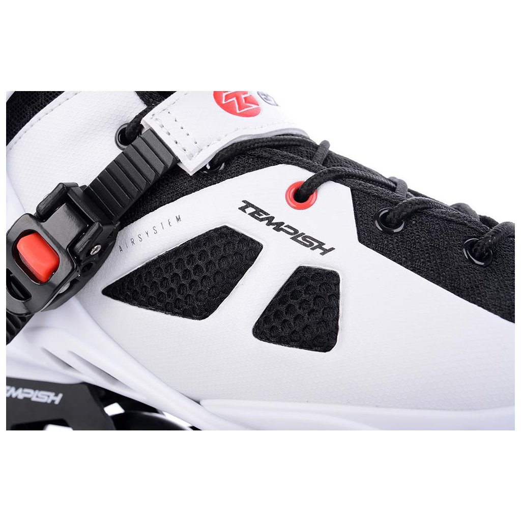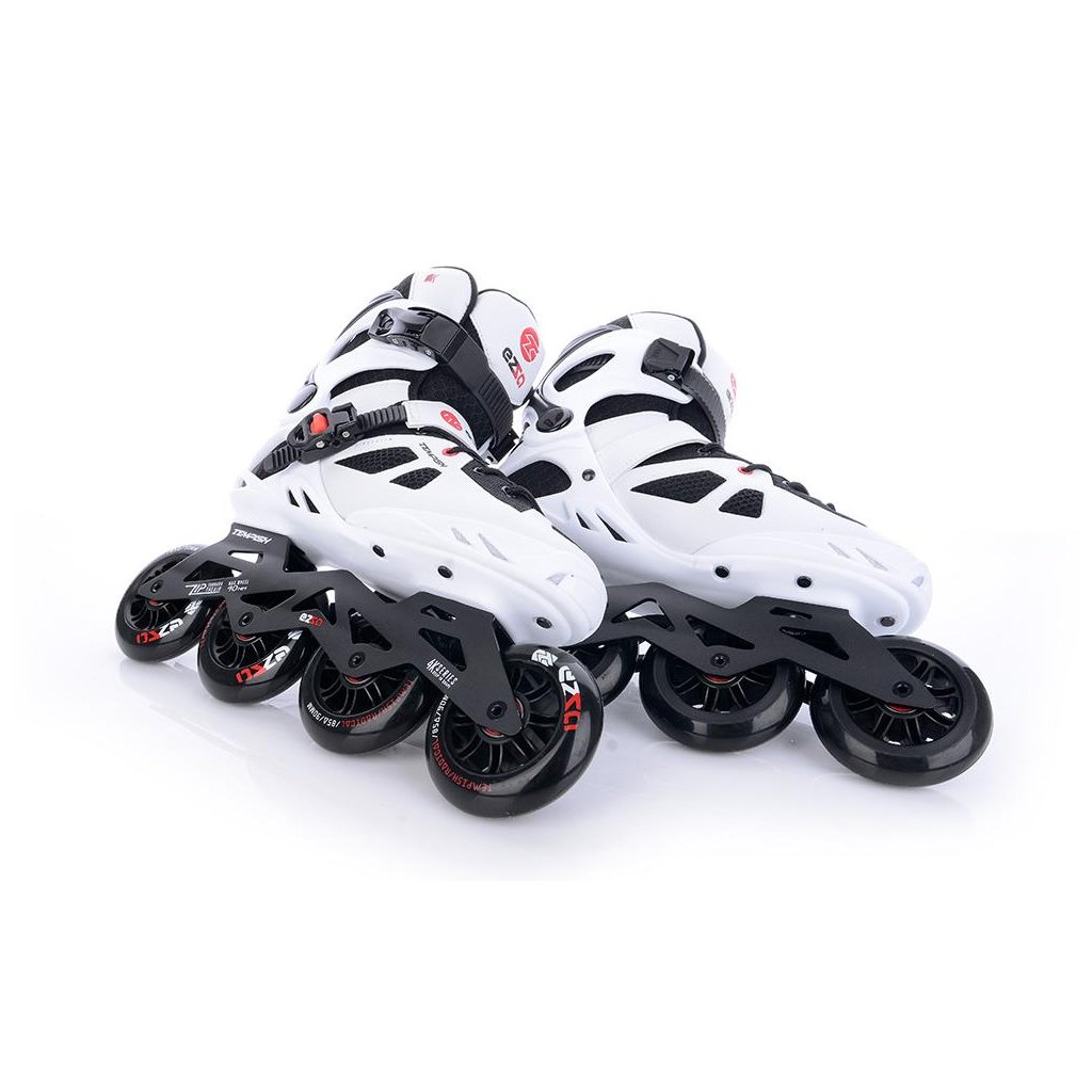 U korčúľ je použitá TEMPISH brzda univerzálna „S“. Brzda je priložená v krabici spoločne so 4-mi skrutkami - veľmi jednoduchá montáž - bez nutnosti demontovať osky a kolieska. Materiál držiaka brzdy - nylon so skleným vláknom - veľmi tuhý a pevný, ktorý umožňuje nastaviť výšku polena. Materiál klátu TPR. Korčule EZZA 90 sú osadené kolieskami zo série RADICAL, PU casting (PUC), Super Hi-Rebound (SHR). Jedná sa o vysoko kvalitné kolieska s veľmi nízkym valivým odporom a dlhou životnosťou, ktoré dosahujú veľmi nízke opotrebenie na rôznych povrchoch a výborne tlmia nerovnosti povrchu čo zaručuje naozaj komfortnú jazdu. Kolieska sú osadené ložiskami ABEC 9 hi-precision s gumovou prachovkou. Šnurovanie je klasické šnúrkami. Cez priehlavok je umiestnený spevňujúci pásik s mikroprackou.