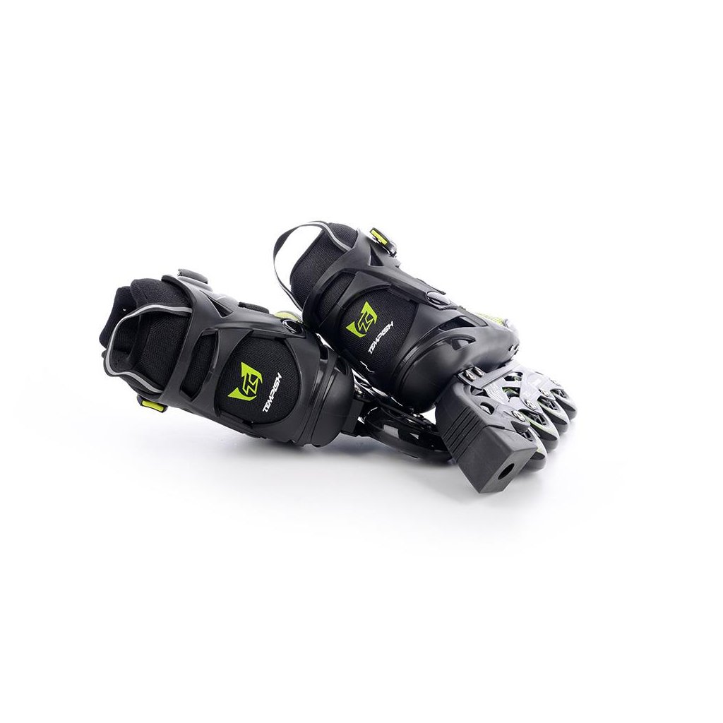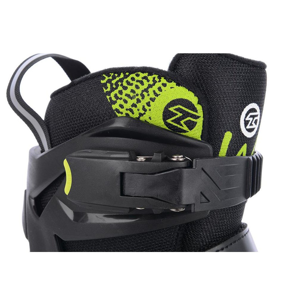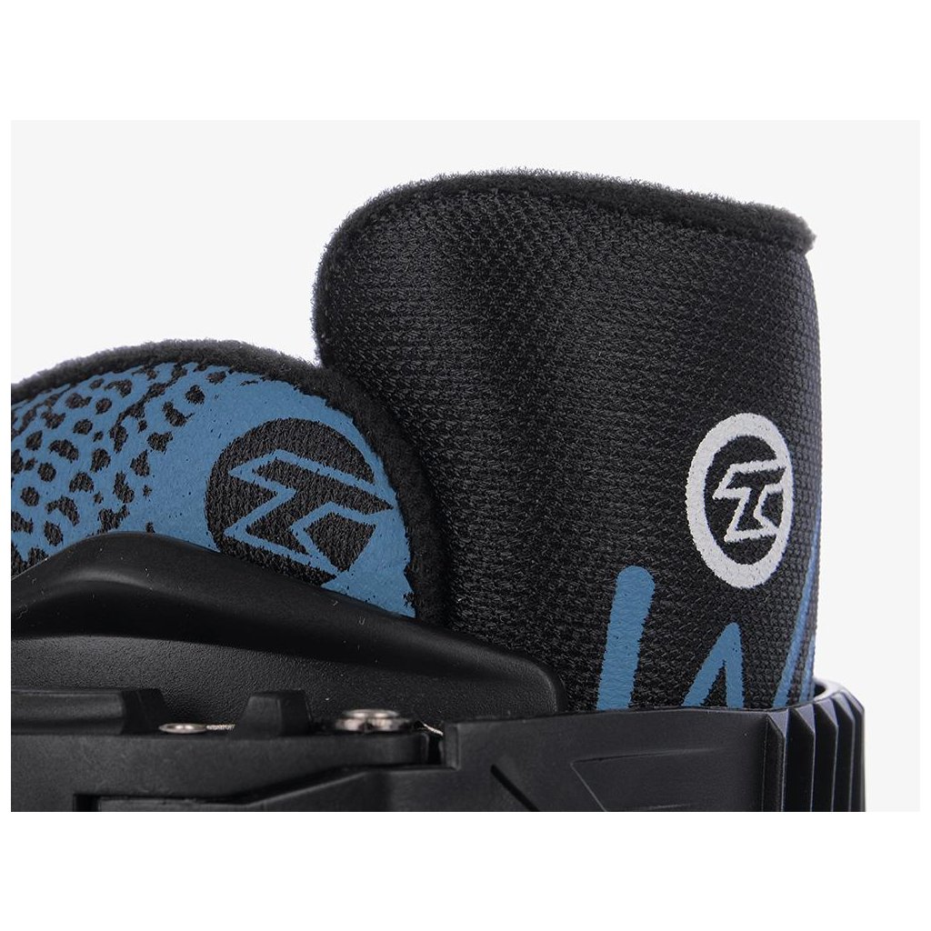 Topánku uzavrite pomocou klasických šnúrok a chodidlo pevne zafixujete v skelete priehlavkovým pásikom na suchý zips. Hornú časť skeletu uzavrite pomocou sťahovacieho pásika s mikroprackou.