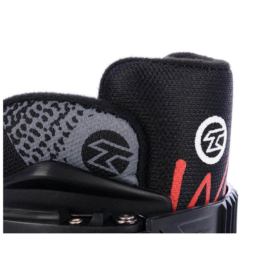 Topánku uzavrite pomocou klasických šnúrok a chodidlo pevne zafixujete v skelete priehlavkovým pásikom na suchý zips. Hornú časť skeletu uzavrite pomocou sťahovacieho pásika s mikroprackou.