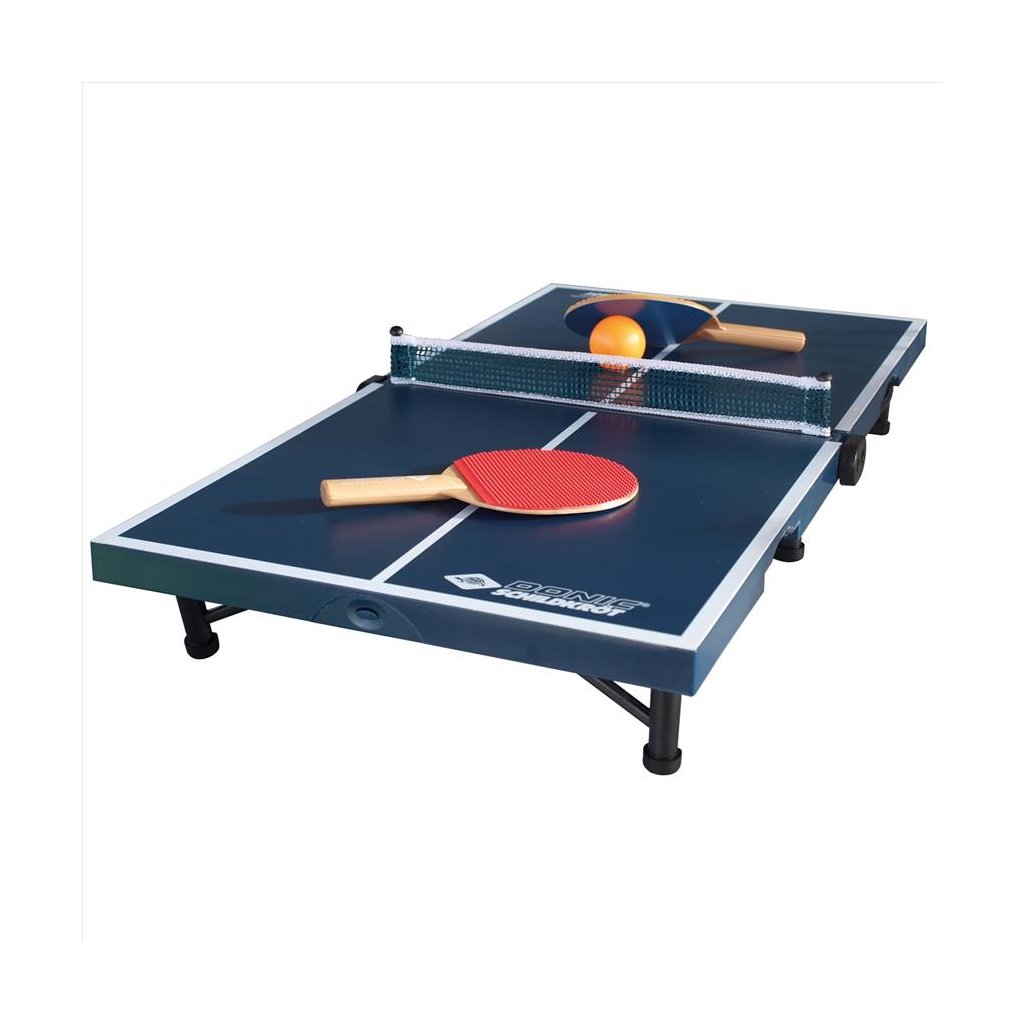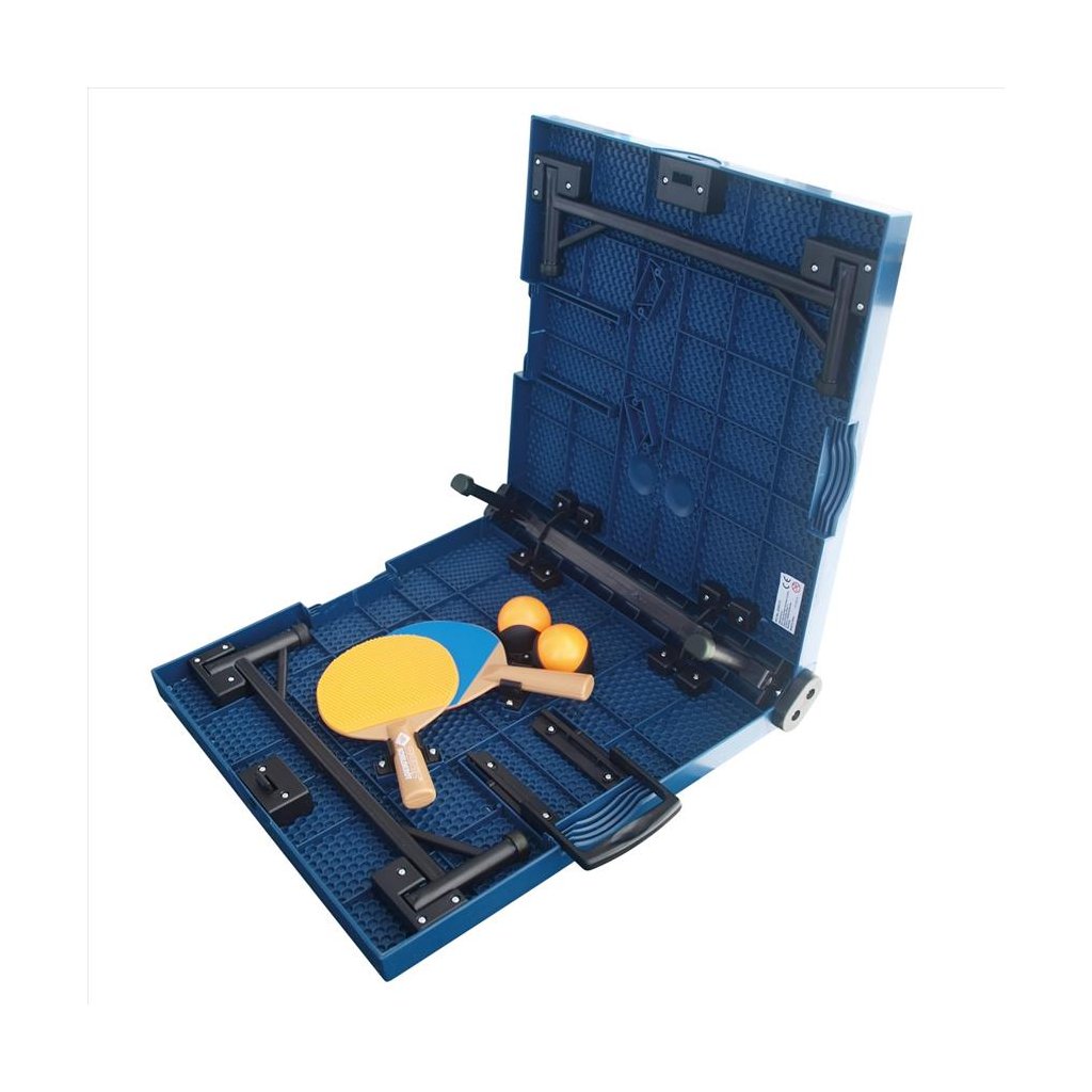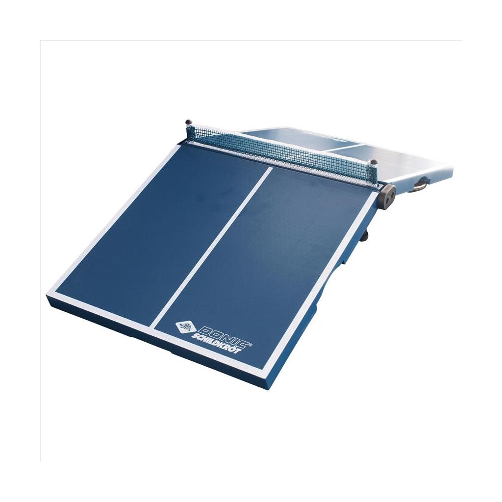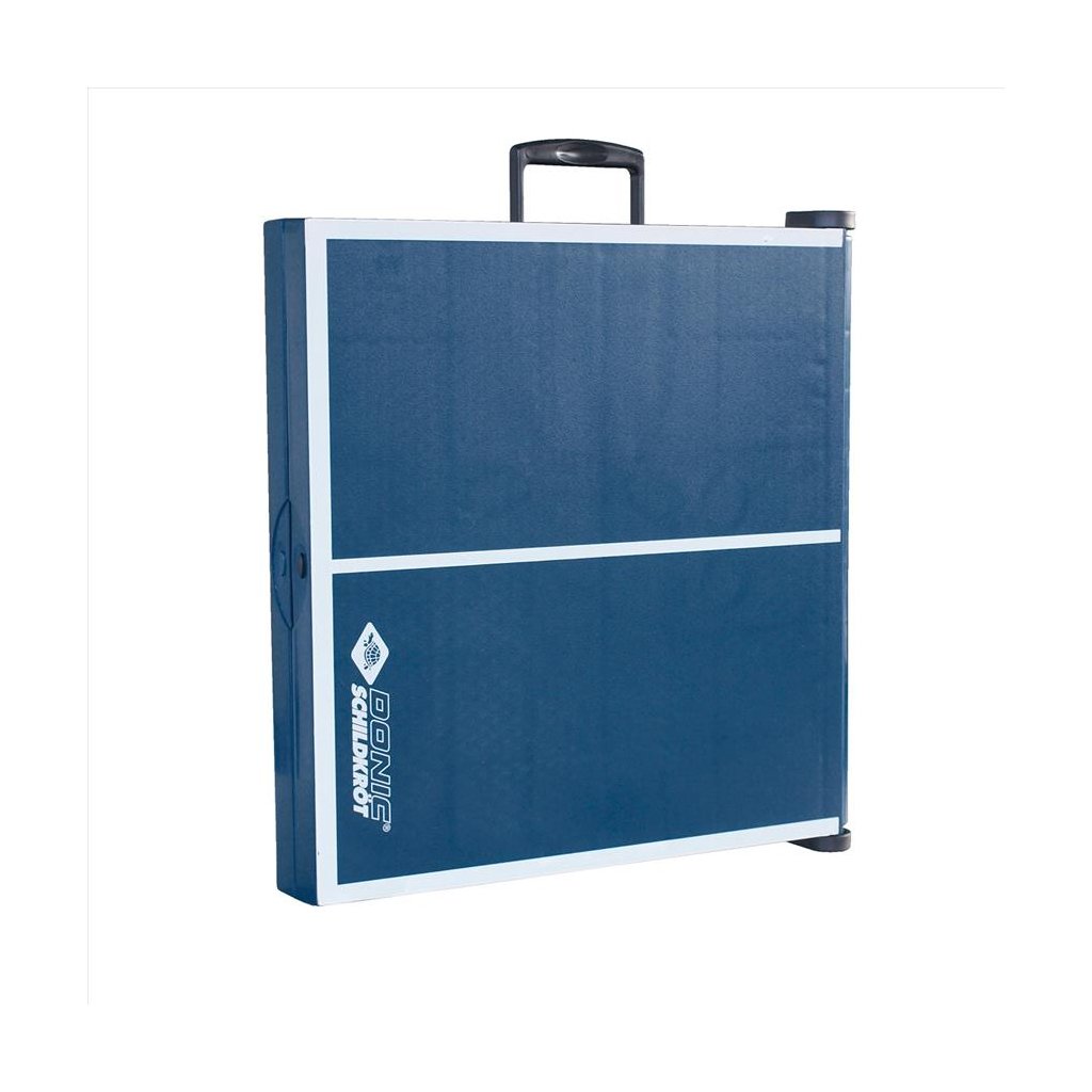 Mini stôl na stolný tenis Schildkrot Midi XL je 1/4 veľkosti ako bežné stoly na stolný tenis. Tento menší stôl je ideálne, ak nemáte priestor pre bežný rozmer stola. Technické údaje: - rozmery stola 120 x 70 x 680 cm - hrúbka hracej dosky 12 mm - nohy 25 mm - hmotnosť 11 kg - súčasťou je ľahko pripojiteľná sieť - farba: čierna / modrá