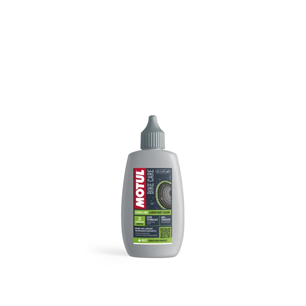 Vysoká účinnosť MOTUL Bicycle Care znamená dokonalé mazanie, dôkladné čistenie a silnú ochranu. Vhodné pre bežné kolesá aj elektrobicykle s dôrazom na biologicky odbúrateľné zloženie a udržateľné obaly. Ponúka najvyšší štandard starostlivosti o váš bicykel. Skvelé pre váš bicykel, dobré pre vaše svedomie. MOTUL Chain Lube Wet uľahčuje dôkladné mazanie všetkých typov reťazí bicyklov. Pomocou najmodernejšej technológie MOTUL Ester prináša Motul Chain Lube Wet najvyššie štandardy mazania reťazí bicyklov používaných vo vlhkých podmienkach a zároveň je plne biologicky odbúrateľný. MOTUL Ester Core Technology poskytuje vysoko polárne molekuly s extrémne vysokou priľnavosťou k reťazi, odolnosťou proti oteru a maximálnou odolnosťou voči tlaku. Mazivá s touto technológiou zďaleka prevyšujú výkonnosť iných známych mazív na reťaze s obsahom pevných látok (napr. s PTFE). Produkty obsahujú BN (Nitrid Boritý). Jedná sa o extrémne tvrdú zlúčeninu, ktorá je známa z iných mazív ako keramika alebo ceramic coating. Vhodné pre bežné aj elektrické bicykle.