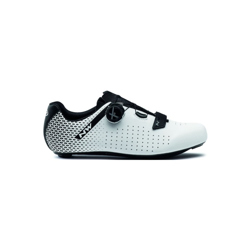 Pánské silniční tretry Northwave v Unibody konstrukci redukující nežádoucí tlaky a zaručující skvělou prodyšnost. Podrážka NRG Air Carbon s 5 větracími otvory ve středně tvrdém provedení (index tuhosti 8/15) je kompatibilní s SPD pedály. Vrchní bezešvá konstrukce v prodyšném unibody střihu je utahována pomocí rychloutahovacího systému Northwave SLW3 s možností velmi jemného utažení/povolení a je doplněna o spodní power strap na suchý zip. Utahování pomocí nejpevnějších lanek z Dyneema vláken. Velikost uvedena v EU číslování, hmotnost 270g.