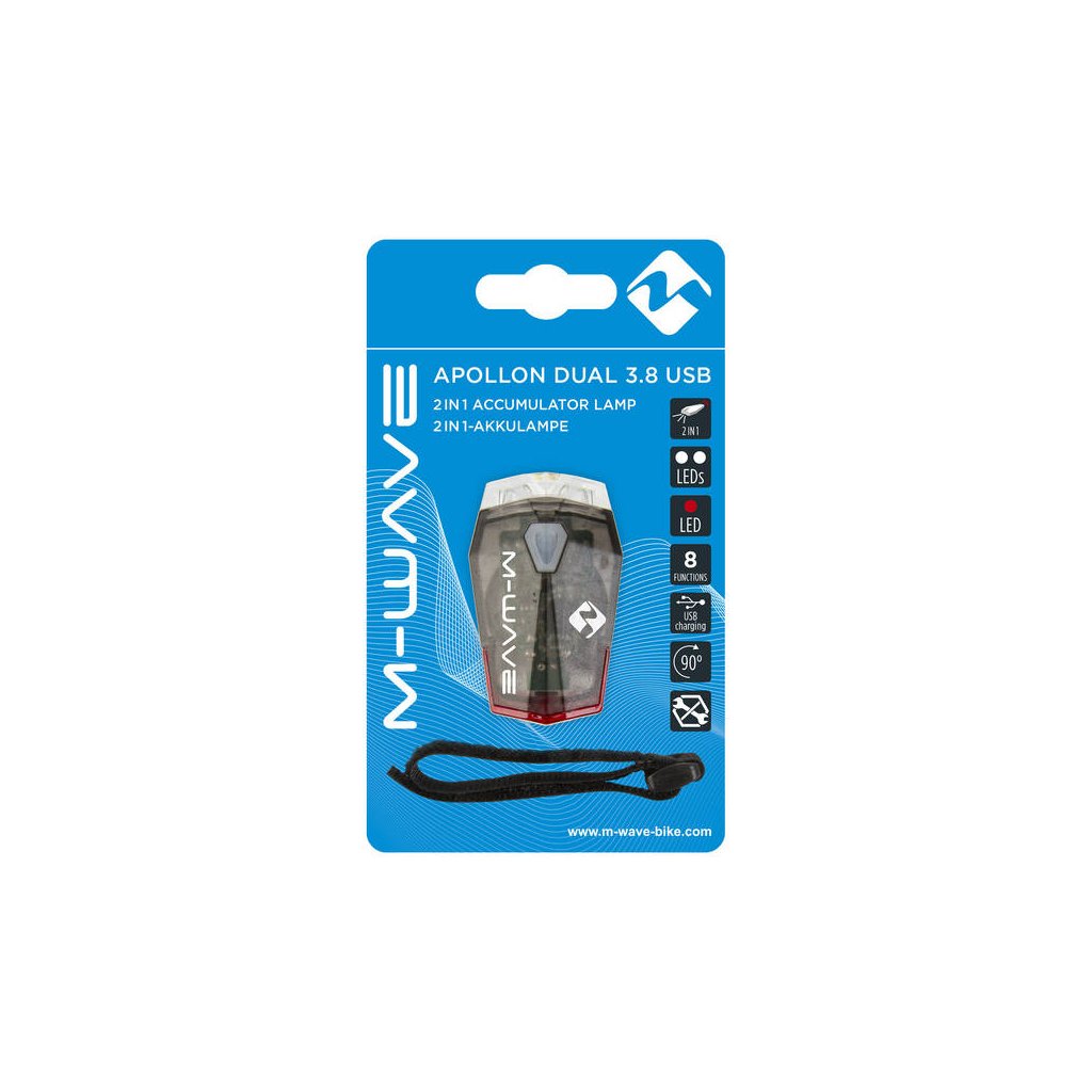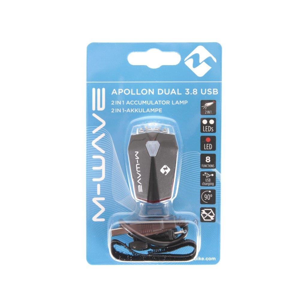 osvetlenie predné M-WAVE Apollon Dual 3.8 USB accu predné aj zadné v 1