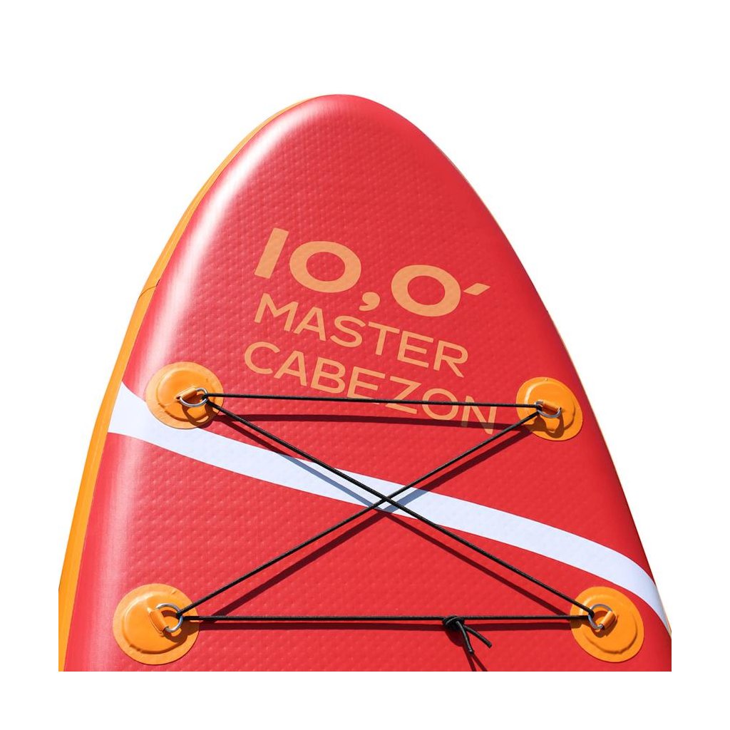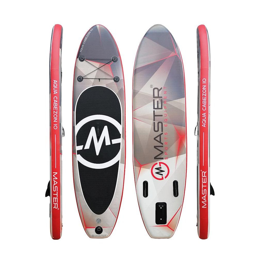 Paddleboard MASTER Aqua Cabezon - 10" je určený pre začiatočníkov i pokročilých jazdcov v pokojných vodách a na miernych vlnách. Skvelý pomer ceny a výkonu pre tých, čo si chcú užívať pádlovanie na vode. Tuhosť paddleboardu zaisťuje výška 15 cm a použitý DROP STICH materiál. Tento model sa vďaka svojej konštrukcii a veľkosti výborne hodí pre všetky vekové kategórie.Je vyrobený z odolných materiálov aj voči slanej vode, UV žiareniu, ľahko ho nafúknete, sfúknete a zbalíte do praktickej tašky.Protišmykový nášľap z EVA peny zaručí pevný postoj a stabilitu. Paddleboarding je nový vodný šport, pri ktorom stojíme na boarde a vpred sa pohybujeme pomocou dlhého pádla.Obľúbený vodný šport umožňuje zapojiť rovnomerne celé telo, zlepšíiť zmysel pre rovnováhu a zvýšiť celkovú fyzickú kondíciu.Pri pádlovaní sa aktívne zapájajú lýtkové svaly na nohách, chrbtové a šikmé brušné svaly a všetky svaly na rukách Technické údaje: univerzálny paddleboard súčasťou balenia je pádlo, plutva, vysokotlaková pumpa s tlakomerom m, prepravný obal, lepiaca sada konštrukcie z PVC, hrúbka dosky 15 cm, nafukovacia komora s technológiou DROP STITCH (vnútorné polyesterové vlákna) protišmyková plocha rozmer dosky: 300 x 76 x 15 cm maximálna nosnosť 110 kg výtlak 290 l hmotnosť: 9 tlak: 15 psy (1,03 bar) madlo pre ľahké prenášanie vystuženej hrany elastickej lanka pre upevnenie batožiny odnímateľná plutva +2 malé pevné prídavné plutvy pre väčšiu stabilitu nerezový krúžok pre uchytenie bezpečnostného lanka – leashe