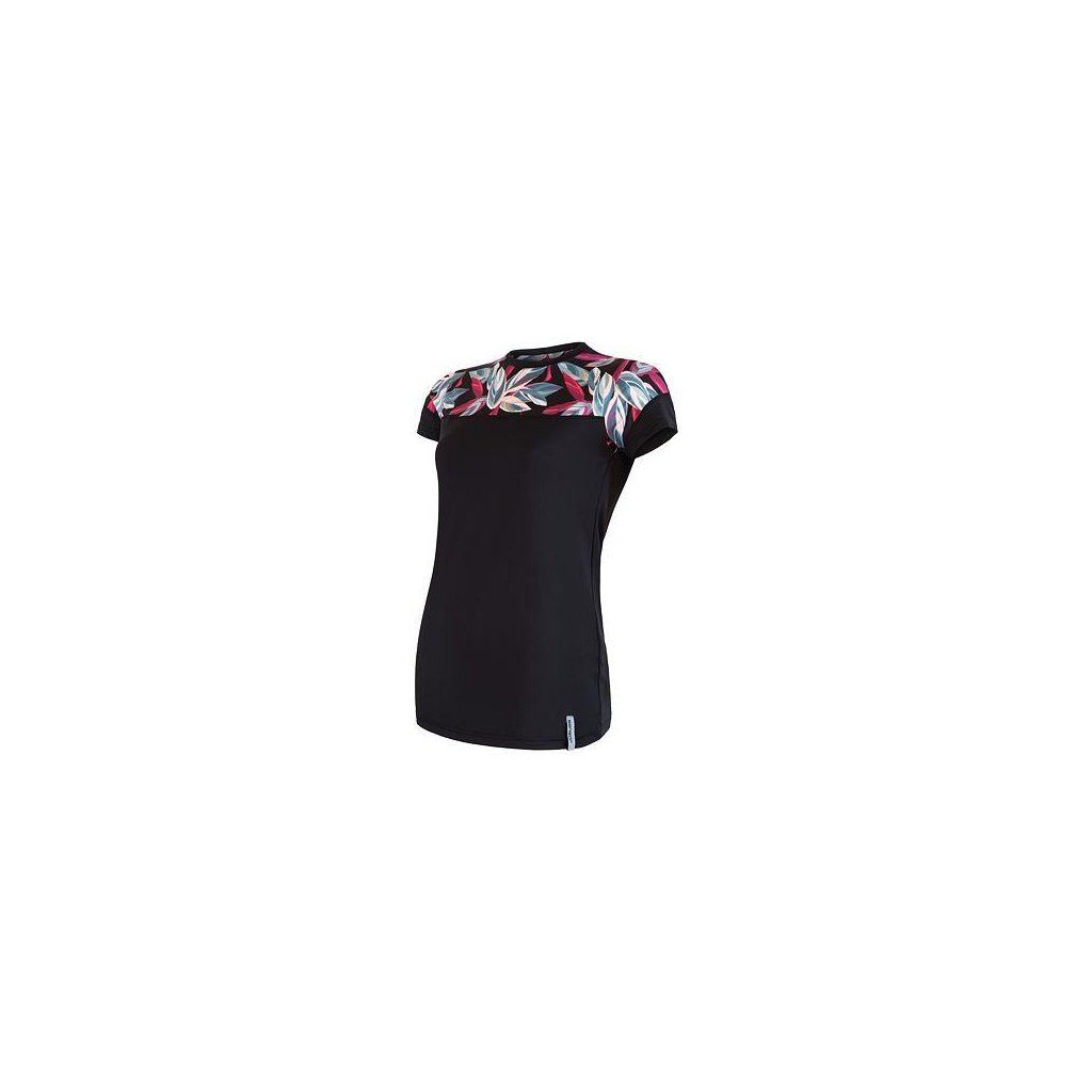 SENSOR COOLMAX IMPRESS dámske tričko kr.rukáv čierna / leaves