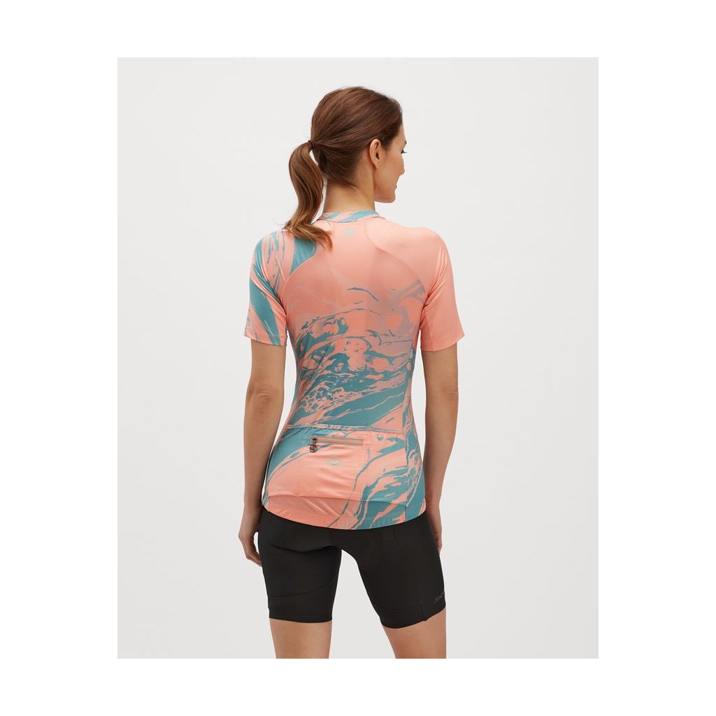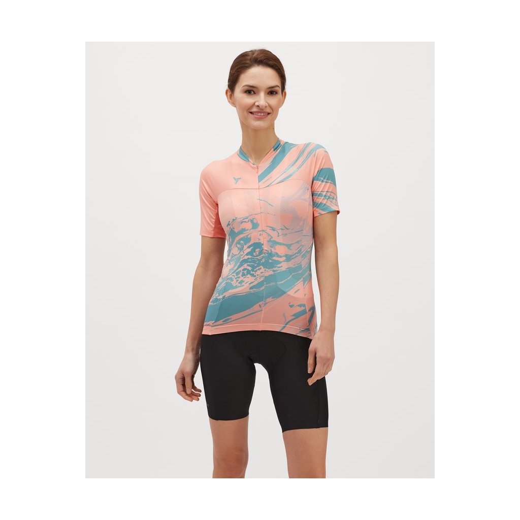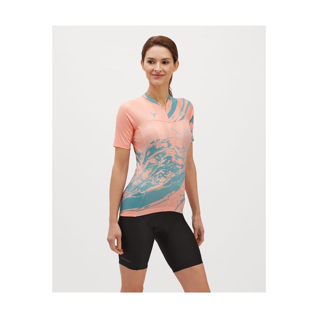 Catirina je ľahký, elastický, všestranný dres vhodný ako na cestné, trekingové, tak aj MTB bicykle v teplých mesiacoch. Dres je vyrobený z priedušného a rýchloschnúceho materiálu Light MESH s technickými detailmi vrátane priedušnej vsadky na chrbte a predného skrytého zipsu s polodlhou dĺžkou. Catirina je dres užšieho strihu s krátkymi rukávmi a predĺženou zadnou časťou, na ktorej nájdete tri hlavné vrecká, plus štvrté so zapínaním na zips. Spodný okraj dresu je zakončený silikónovým pásikom zabraňujúci posunu a samozrejmosťou sú aj reflexné prvky zvyšujúce vašu bezpečnosť pri zhoršenej viditeľnosti.
