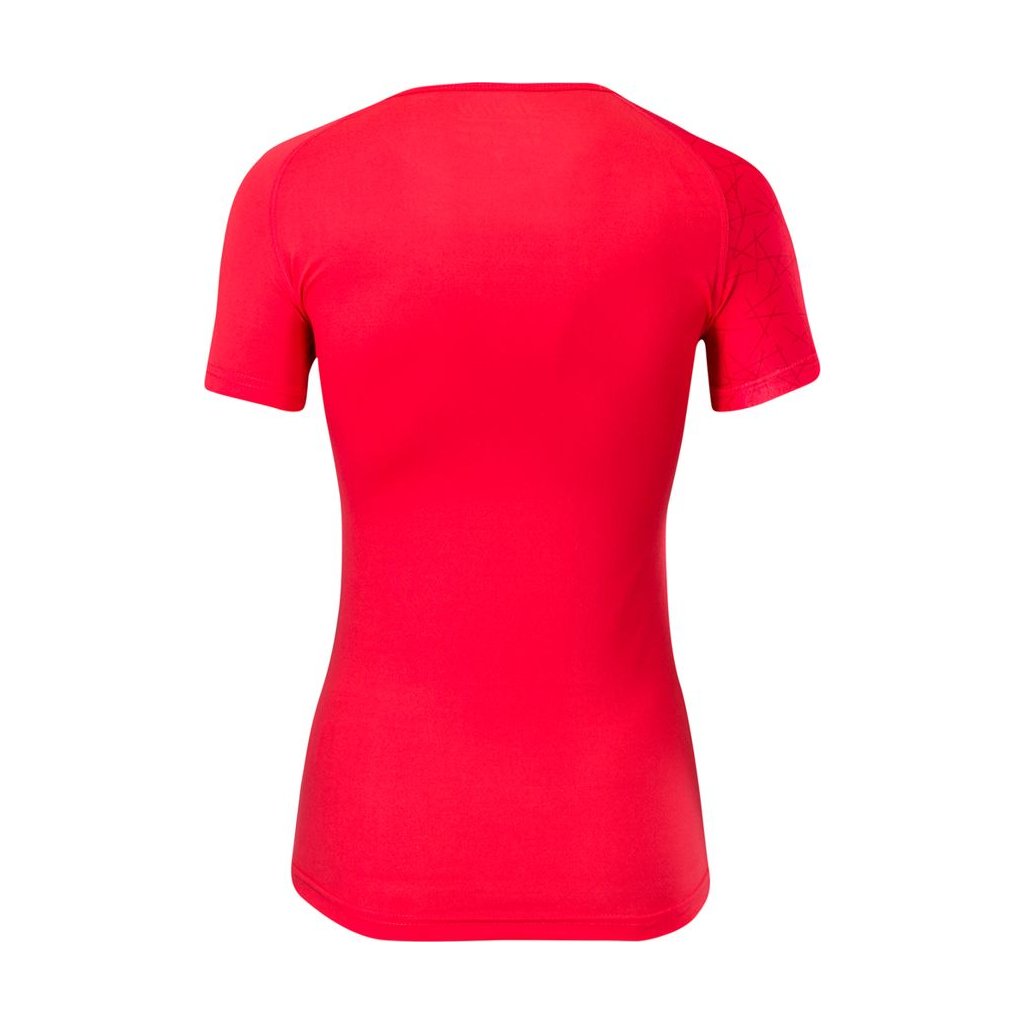 Dámske športové tričko Gion. Tričko má veľmi pekný vzor a spolu s vypasovaným strihom oblečené výborne sadne. Tričko s krátkym rukávom je vyrobené z ľahkého, obzvlášť príjemného a priedušného funkčného materiálu. Zložením je z 93% polyesteru a zo 7% z elastanu. To mu dodáva pružnosť. Aby sa tričko dobre nosilo, je zošitý pomocou pružných plochých švov. Potlač sa pomocou sublimácie tlačí do štruktúry materiálu, takže je potom farba mechanicky aj chemicky odolná. Giona je tričko vhodné na bicykel, turistiku i iné športy, ale vďaka príjemnému materiálu aj na bežné nosenie.