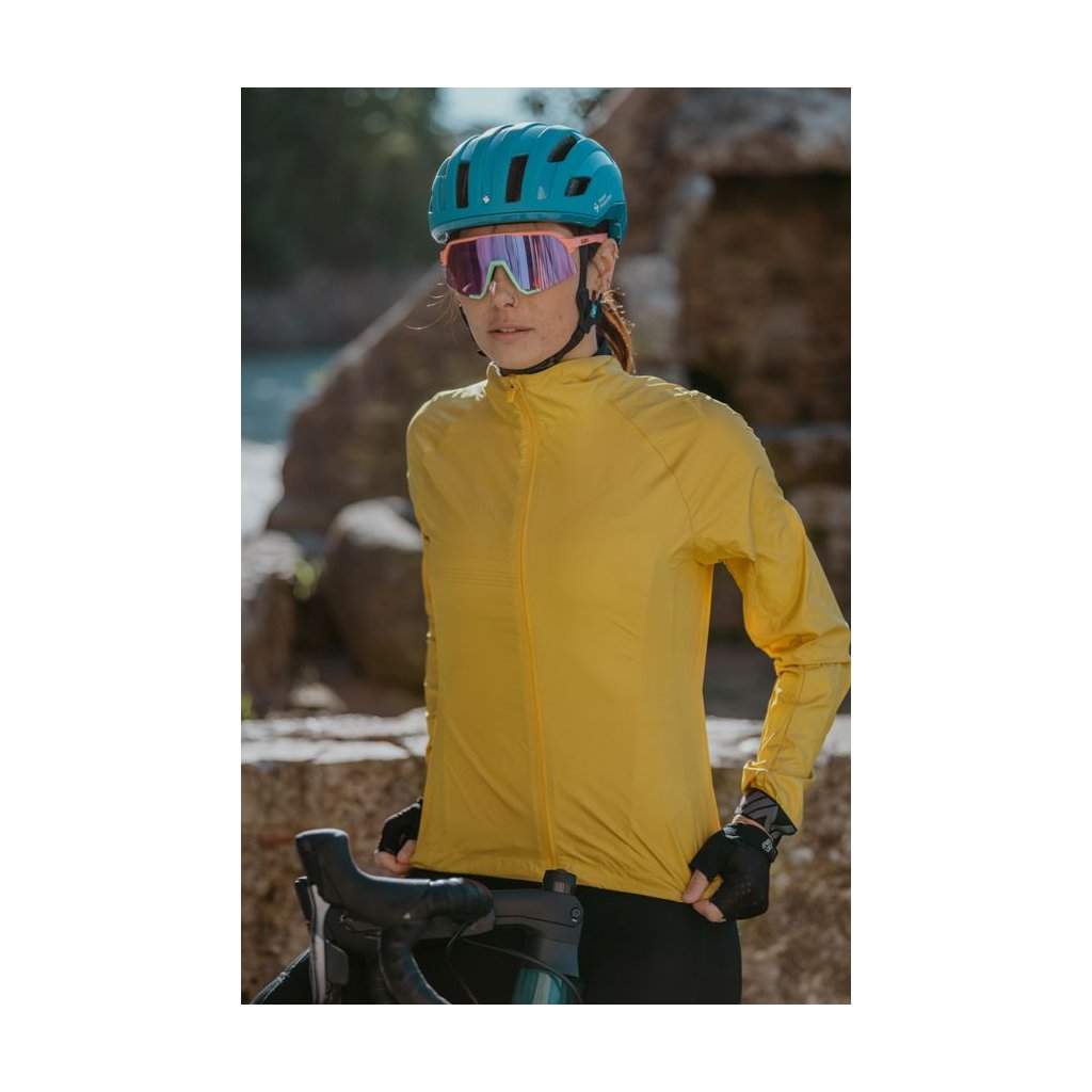 Dámska bunda z vetru odolného materiálu. Možno ju ľahko zbaliť do vrecka, a tak ju môžete mať vždy pri sebe pre prípad zhoršeného počasia.