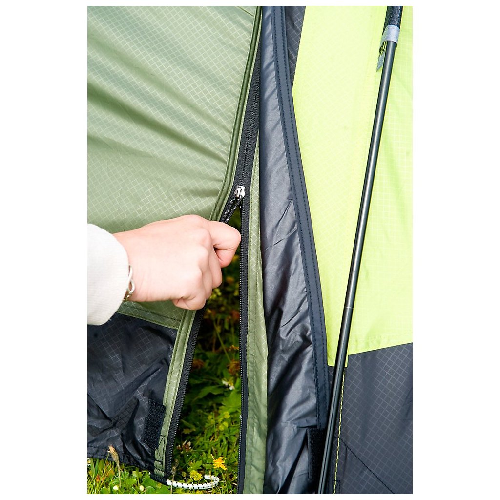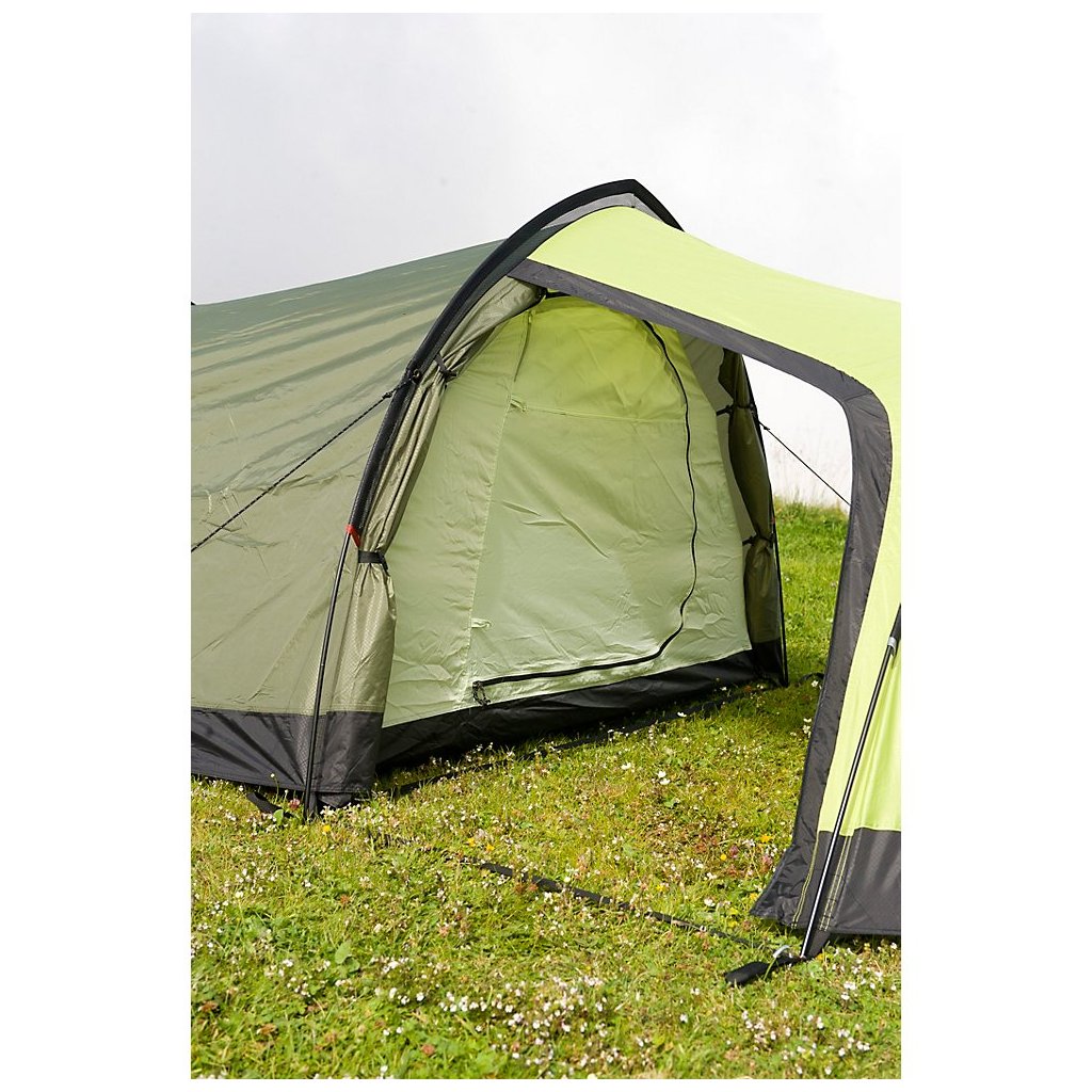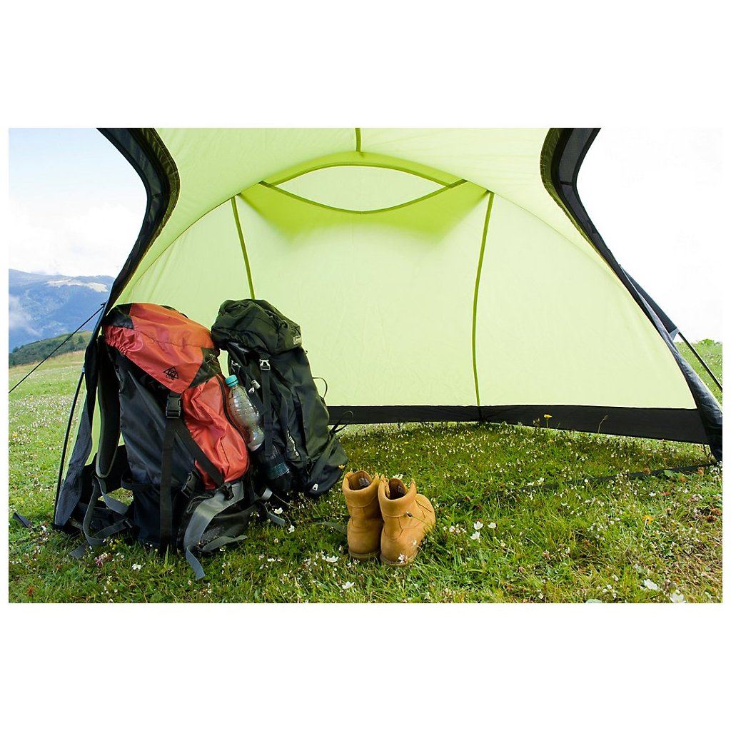 Veľmi priestranný a dostatočne ľahký tunelový stan. Lomená konštrukcia zväčšuje výšku stanu a zároveň zvyšuje odolnosť konštrukcie proti vetru a dažďu.