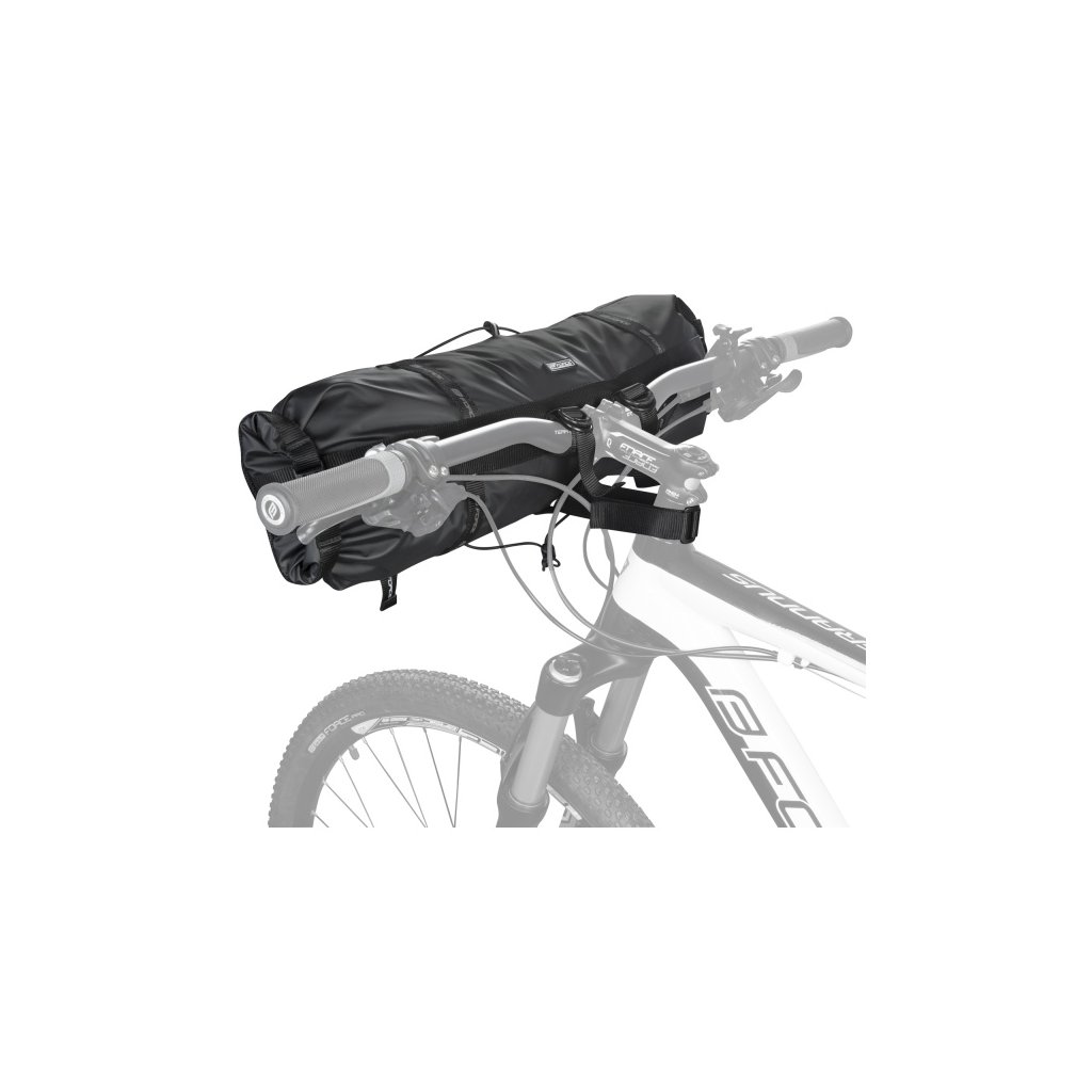 Nepremokavá taška na riadidlá. Uchytenie pomocou sťahovacích popruhov, obojstranné rolovacie zatváranie umožňuje meniť objem brašne, gumicuk pre upnutie ďalšieho nákladu. Ľahko umývateľný materiál Tarpaulin. Objem tašky: cca 8 l. Dĺžka: 65cm, priemer: 17cm, hmotnosť: 333 g.