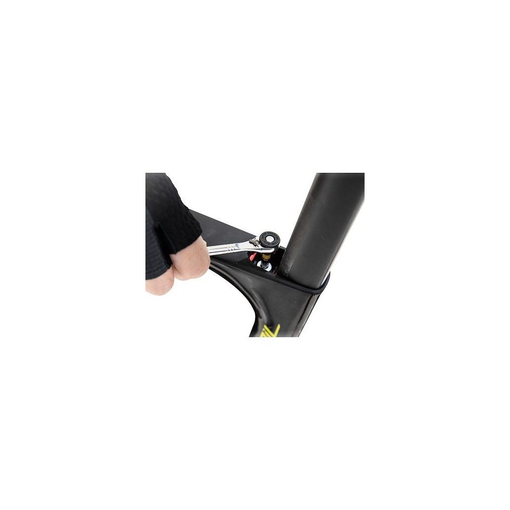 Neuveriteľne kompaktný sada náradia s račňou, bity a inbusovým kľúčmi s guľovým koncom. Sedem ráčnových bitov a sedem imbusových kľúčov s guľovým koncom je uložené v inovatívnom skladacím tele organizéra, ktoré je dostatočne malé, aby sa vošlo do vrecka na dres alebo do sedlovej tašky. Počet funkcií: 15 Nástroje: 1.5 / 2 / 2.5 / 3/4/5/6 mm inbus kľúče s guľovým koncom, 3/4/5/6/8 mm inbus bity, T25 Torx® bit, # 2 krížový skrutkovač bit Materiál nástrojov: S2 tvrdená oceľ Materiál puzdra: Engineering grade polymér Materiál račne: tvrdená oceľ Rozmery: 10.1 x 6.3 x 1.7 cm Hmotnosť: 185 g