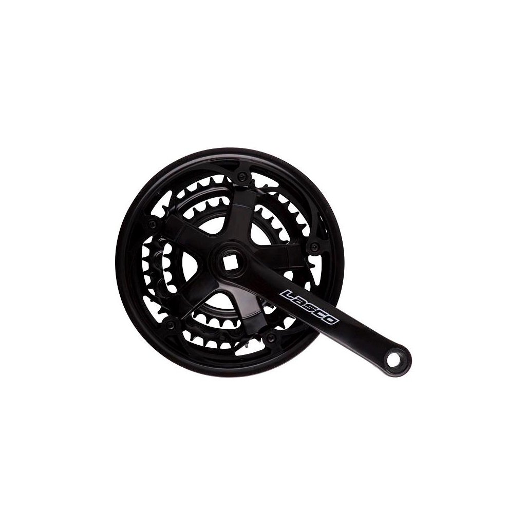 Trojprevodník s krytom pre 6/7 koleso, oceľové prevodníky 48/38/28, nitované, plastový kryt, dĺžka kľučiek 170 mm, odporúčaná dĺžka osy 122 mm