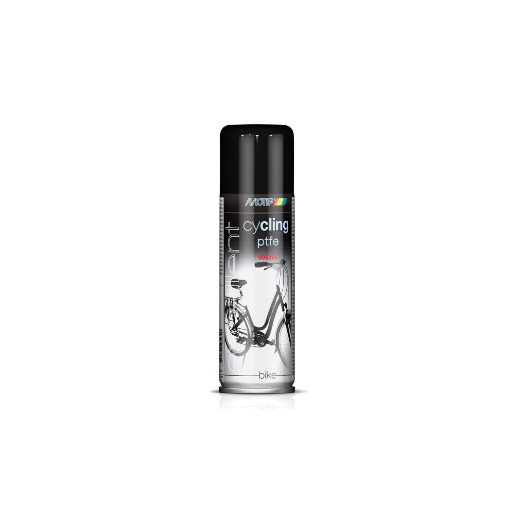 Univerzálne mazadlo s vynikajúcou mechanickou a teplotnou stabilitou na ochranu kovových, mechanických častí. PTFE sprej má veľmi nízky trecí faktor a excelentnú priľnavosť. PTFE sprej je odolný voči vplyvom počasia, slabým kyselinám a zásadám. MoTip cyklo PTFE cyklo sprej má veľmi jemnú štruktúru (veľkosť častíc je približne 5 mikrometrov) a je vybavený smerovou tryskou.