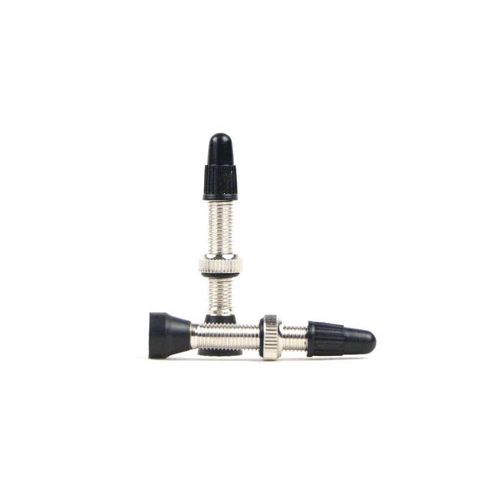 Sada obsahuje dva mosadzneé poniklované ventily s 34 mm dĺžkou s guľat&ou tesnením do ráfky, matkou a tesnením pod matku