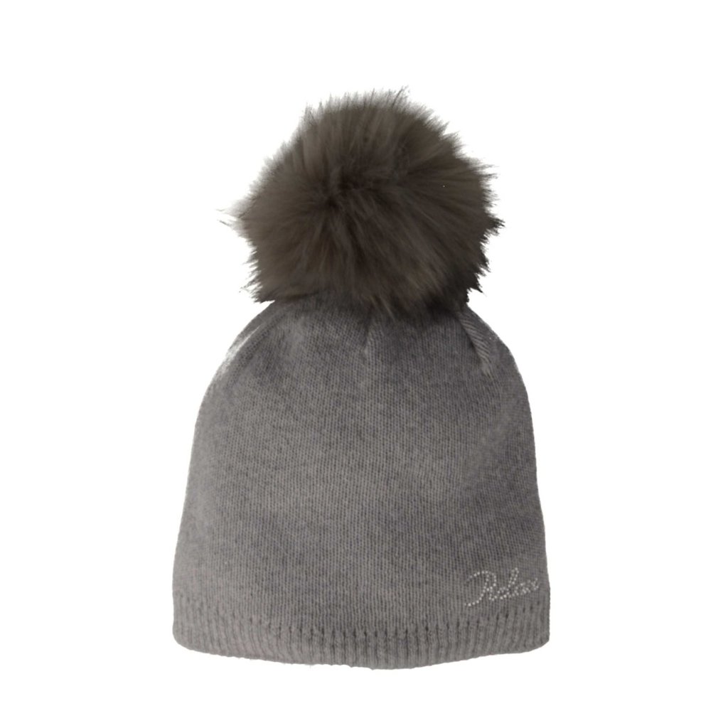 Dámska zimná čiapka jednoduchého vzoru s originál Swarovski kamienkami na logu, s brmbolcom.. Materiál: 80% Polyakryl 20% Polyamid|Farba: šedá| Vyrobené v SR.