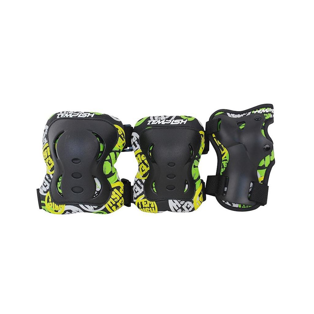 Univerzálna 3-sada chráničov na kolená, lakte a zápästia. Flexibilná konštrukcia chrániče a jeho plastové výstuhy veľmi pohodlne "padne" na chránenej časti tela. Sú veľmi ľahké a minimálne obmedzujú v pohybe. Vrchný materiál je odolný proti oteru. Vnútorný materiál výborne odvádza pot a vlhkosť z tela. Elastický materiál sa prispôsobuje podľa pohybu korčuliarov.