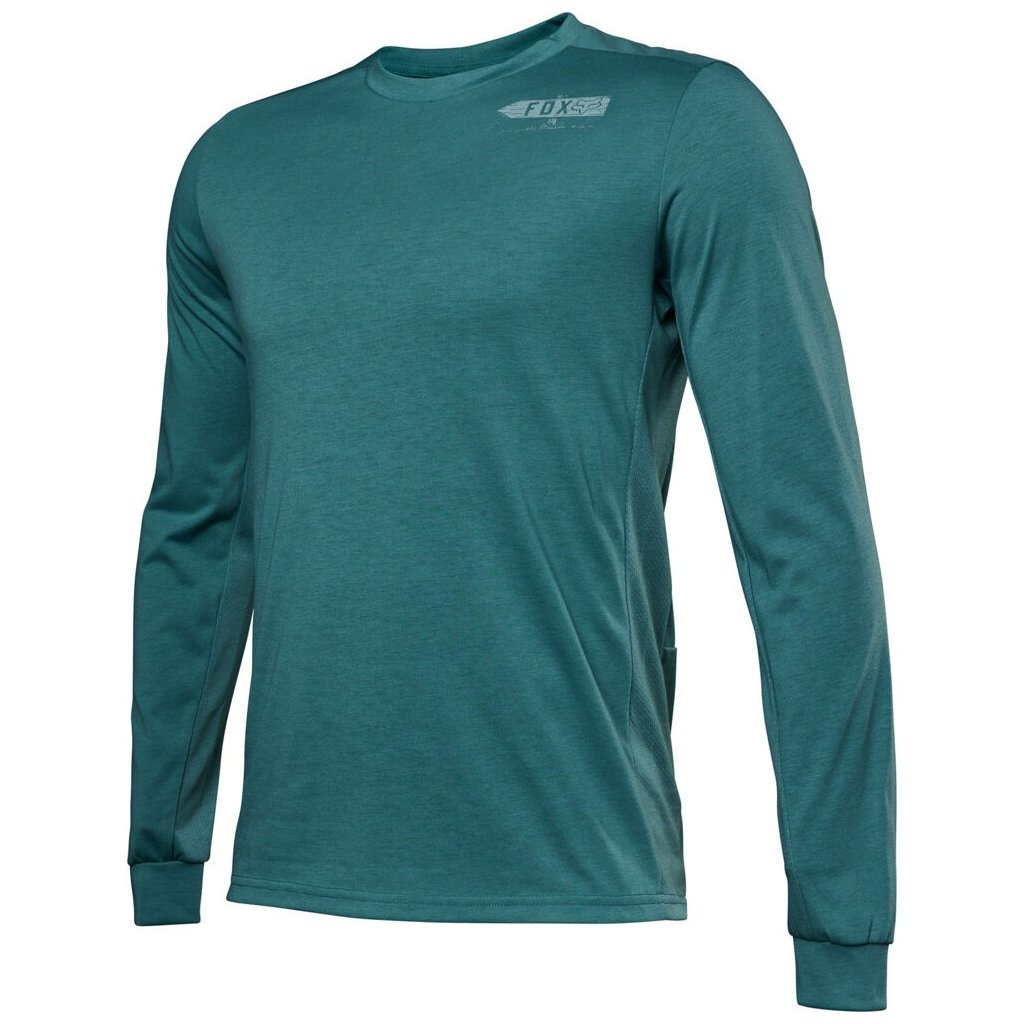 Pánsky XC/Trail/Allmountain dres v pohodlnom strihu s dlhými rukávmi a predĺženým chrbtom z Dri Release materiálu. DriRelease materiál rýchlejšie schne, odvádza vlhkosť a neutralizuje zápachy. Odolná potlač Fox na hrudi a rukávoch. Zloženie materiálu: 85% polyester, 15% bavlna.