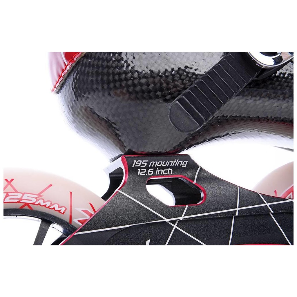 Skelet je extrémne odľahčený tvorený siedmimi vrstvami karbónového vlákna. Skelet je možné individuálne dotvarovať - odporúčame tento proces vykonávať opakovane v niekoľkých postupných krokoch pri teplote do max. 110 °C. Pred tvarovaním je dôležité odmontovať pracku a kolieska, podvozok na topánke ponechajte - v prípade jeho demontáže by sa mohlo stať, že sa počas rozpekania zmení rozstup montážnych otvorov!! Každý používateľ vykonáva tento razantný zásah do konštrukcie korčule na vlastné riziko. Po vykonaní tohto úkonu okamžite končí záruka na skelet korčule!!! Nevhodným zásahom, alebo postupom sa môže topánka nenávratne poškodiť!