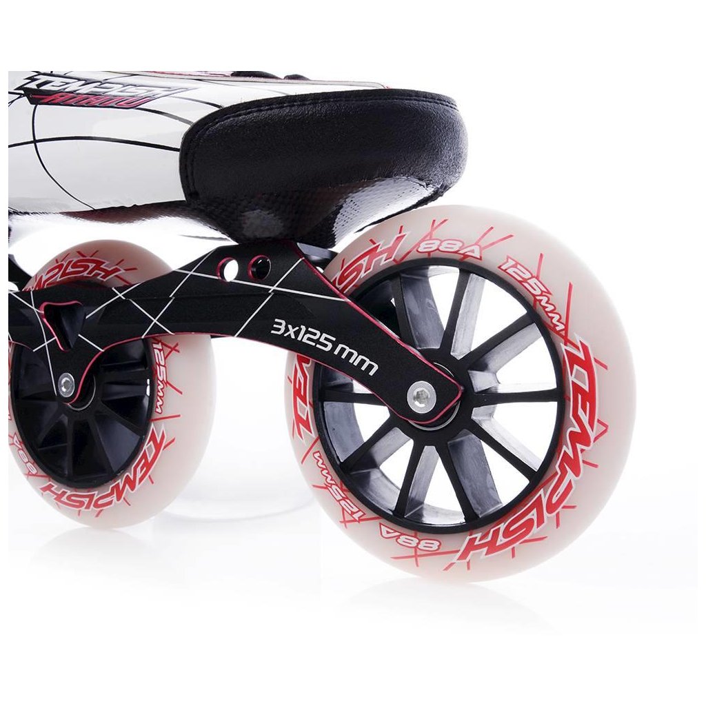 < Korčule sú osadené v základe:kolieska: TEMPISH DTW 125mm 88A (Tvrdosť 88A je určená pre rovné povrchy bez nerovností s jemnou štruktúrou)