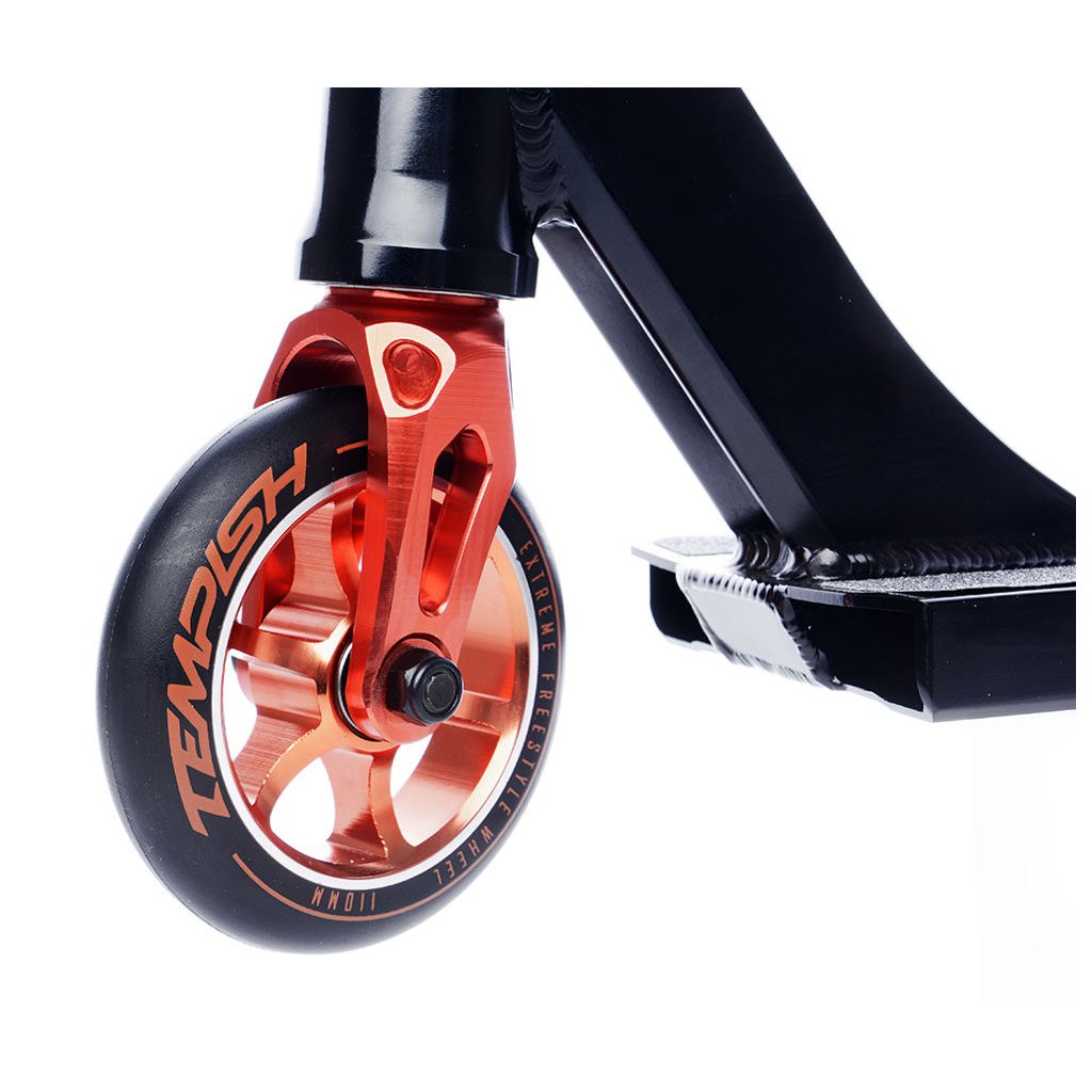 Kolieska s priemerom 110 mm, tvrdosť 88A Super Hi-rebound s hliníkovým jadrom, vysoko kvalitné ložiská ABEC 9 chrome top speed, hi-precision s gumovými prachovkami.