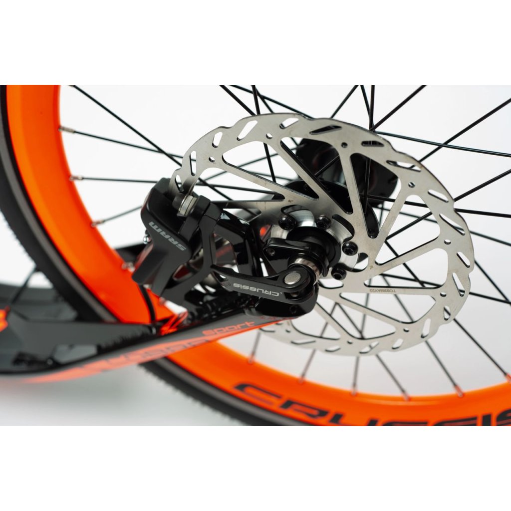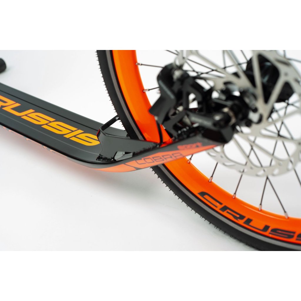 Hliníkový skúter COBRA Sport od spoločnosti CRUSSIS na špičkových hydraulických kotúčových brzdách SRAM s kolesami s priemerom 26 × 20" a hmotnosťou 8,650 kg. Kolobežka je ideálna pre akčných jazdcov v kopcovitejšom teréne s oveľa lepším brzdným výkonom. Užívajte si svoju obľúbenú trasu bez obmedzení! PREČO HLINÍKOVÝ A NIE OCELOVÝ RÁM?
