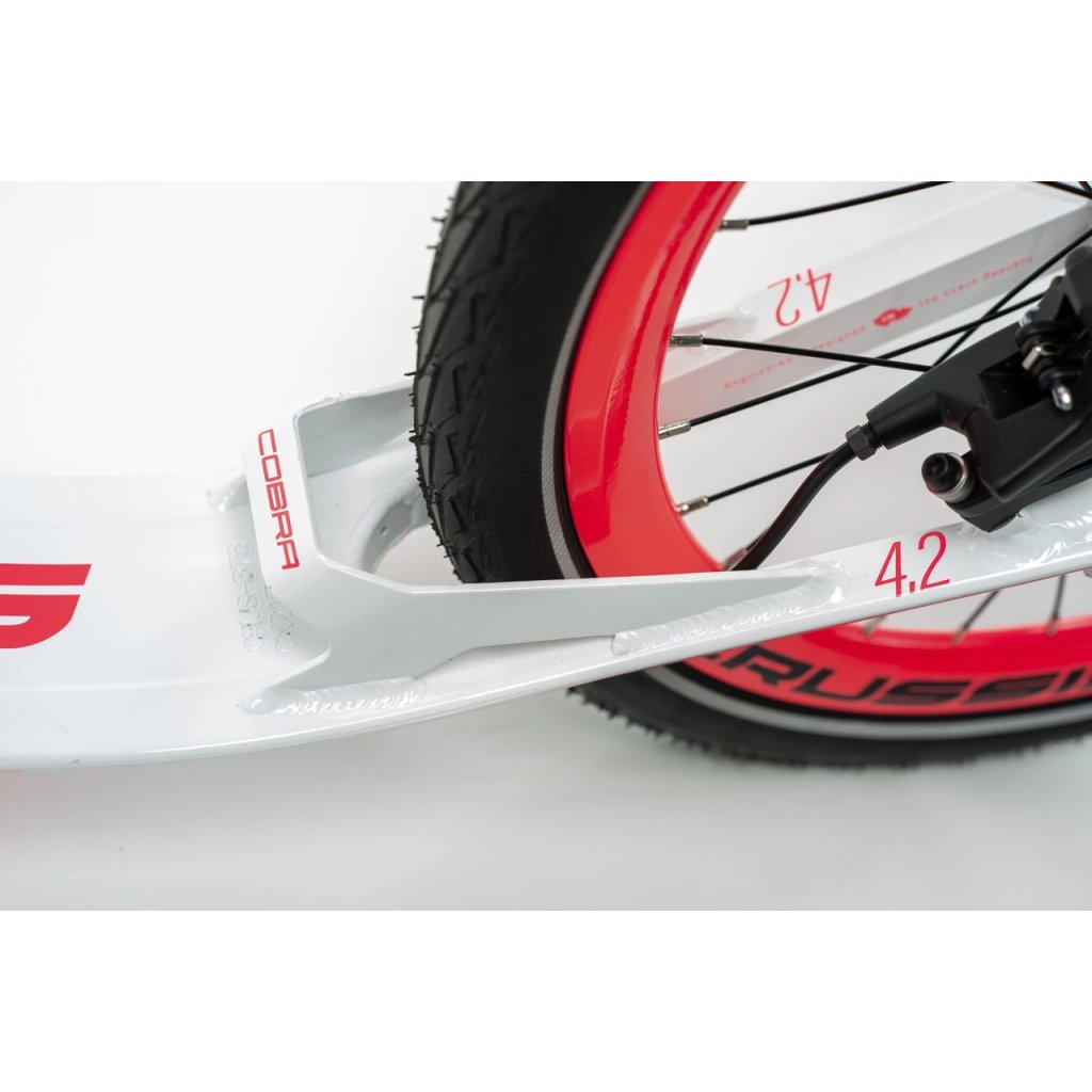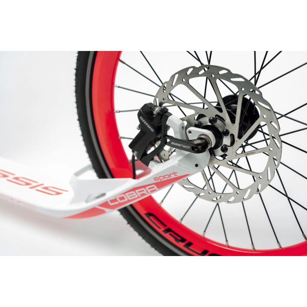 Hliníkový skúter COBRA Sport od spoločnosti CRUSSIS na špičkových hydraulických kotúčových brzdách SRAM s kolesami s priemerom 26 × 20" a hmotnosťou 8,650 kg. Kolobežka je ideálna pre akčných jazdcov v kopcovitejšom teréne s oveľa lepším brzdným výkonom. Užívajte si svoju obľúbenú trasu bez obmedzení! PREČO HLINÍKOVÝ A NIE OCELOVÝ RÁM?