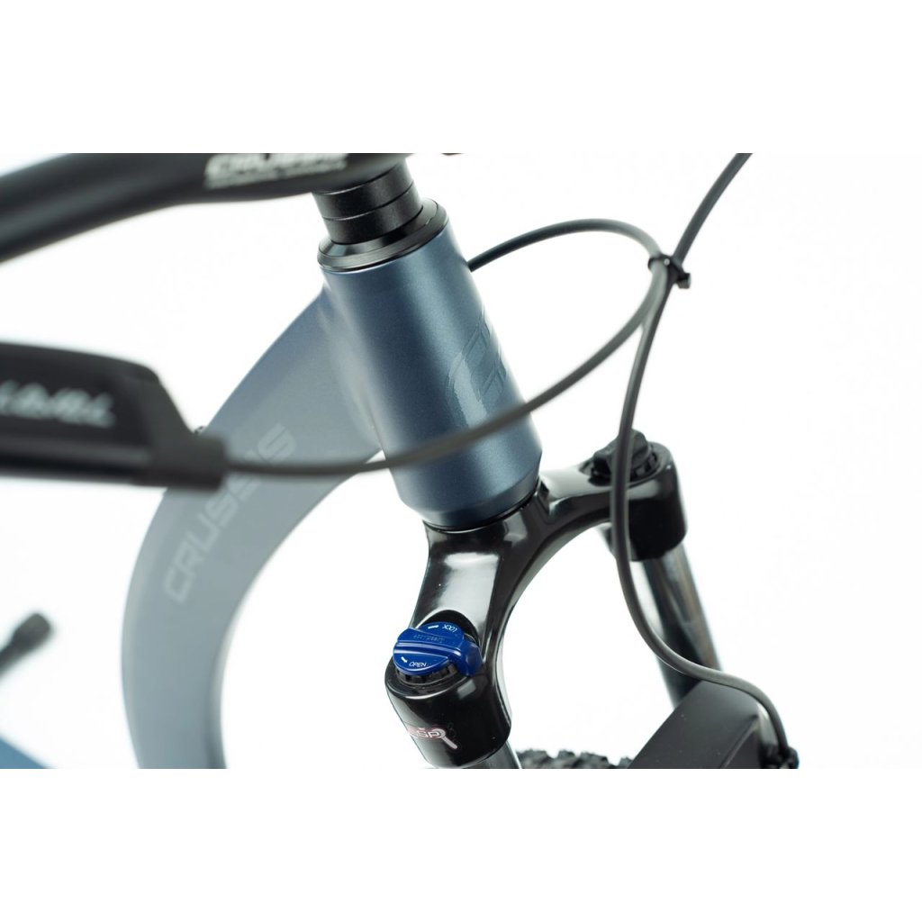 Hliníkový terénny skúter CROSS 6.2 na špičkových hydraulických kotúčových brzdách SRAM s priemerom kolies 26"×20", hmotnosťou 10,870 kg, odpruženou vidlicou SUNTOUR a pneumatikami SCHWALBE MTB. Kolobežka je ideálna do náročnejšieho terénu na zjazd alebo akčnú jazdu so psom. Užite si svoju obľúbenú trasu bez obmedzení! PREČO HLINÍKOVÝ A NIE OCELOVÝ RÁM?