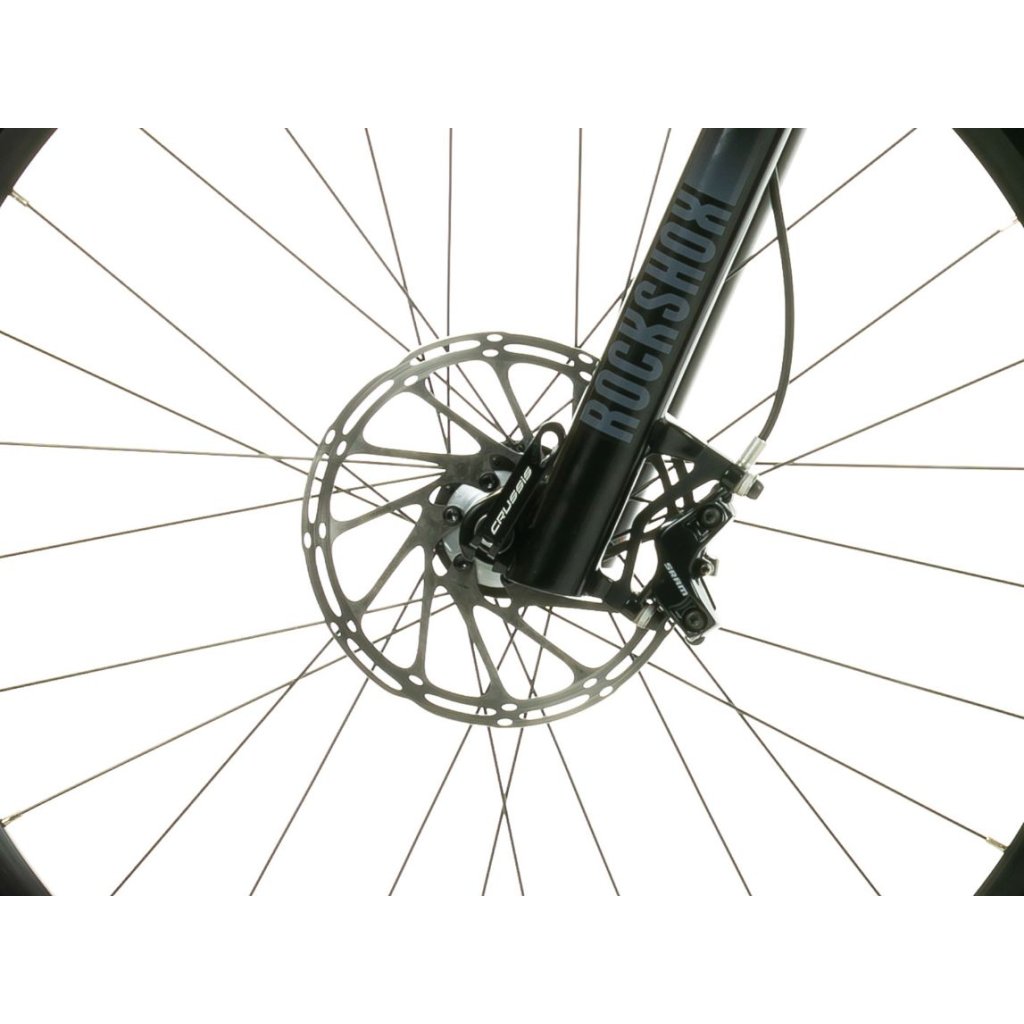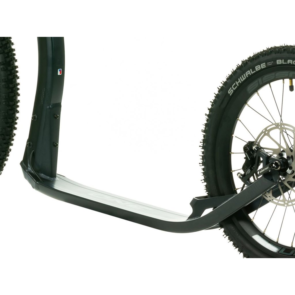 Jednofarebná hliníková terénna kolobežka ONE CROSS 9.2 na špičkových hydraulických kotúčových brzdách SRAM GUIDE T s priemerom kolies 27,5"×20", hmotnosťou 9,887 kg, odpruženou vzduchovou vidlicou ROCKSHOX FS Judy Silver TK Solo Air 27,5" so zámkom vidlice a na pneumatikách SCHWALBE MTB. Kolobežka je ideálna do náročnejšieho terénu na zjazd alebo akčnú jazdu so psom. Užite si svoju obľúbenú trasu bez obmedzení! PREČO HLINÍKOVÝ A NIE OCELOVÝ RÁM?