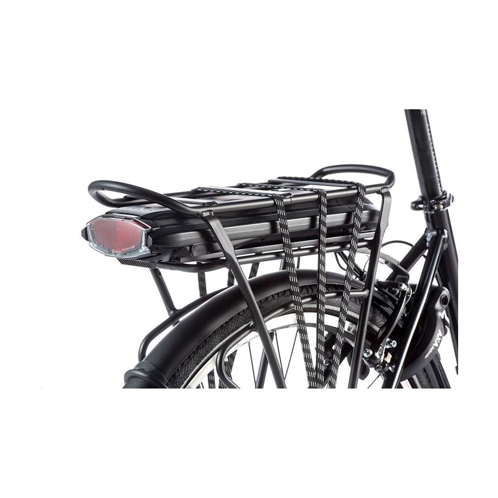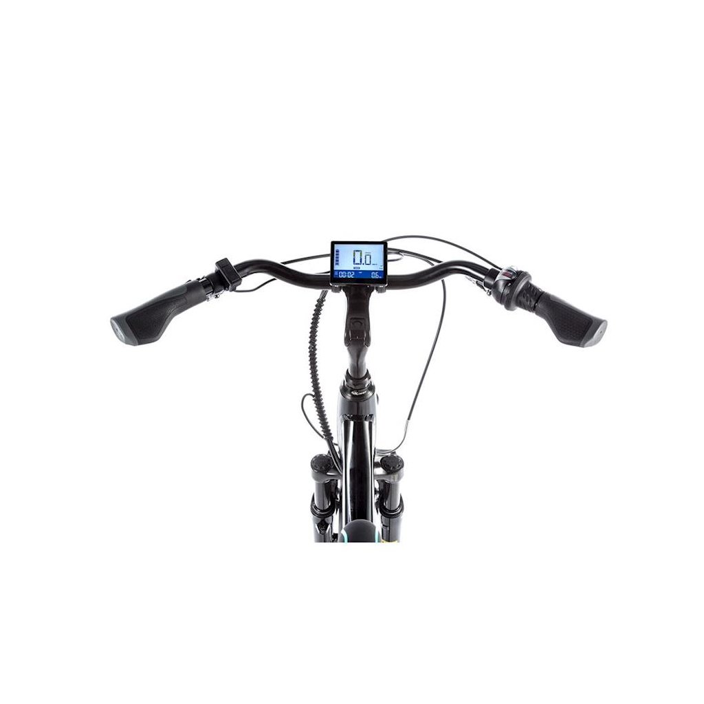Mestské elektrobicykel Grande s hliníkovým rámom, elegantným dizajnom, odpruženou prednou vidlicou, V-brzdami a rozmerom kolies 26 ". Novinkou je batéria s výkonnými článkami LG s kapacitou 13Ah (468Wh) umiestnená na zadnom nosiči a zadným integrovaným svetlom. Ďalším plusom je nová rychlo nabíjačka s nabíjacím prúdom 3A (predtým 1,8A). Vďaka ktorej sa výrazne skráti doba nabíjania batérie. Elektrobicykel je vybavené zadným motorom Bafang s nominálnym výkonom 250W a max.výkon 350W (EÚ NORMA EPAC EN15194). BMS systém (battery managment system) v batérii umožňuje sledovať históriu batérie a funkčnosť jednotlivých článkov. Systém sa ovláda pomocou LCD displeja a tlačidlového ovládača umiestneného na riadidlách. LCD displej zobrazuje funkcie: - voľbu 7 režimov asistencie - funkciu WALK (rýchlosť chôdze - využitie napr: pri vedení bicykla do prudkého kopca) - ukazovateľ stavu nabitia batérie Príslušenstvo: Nabíjačka a akumulátor je súčasťou balenia.