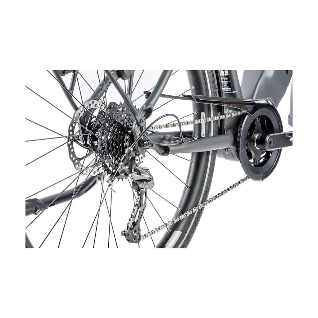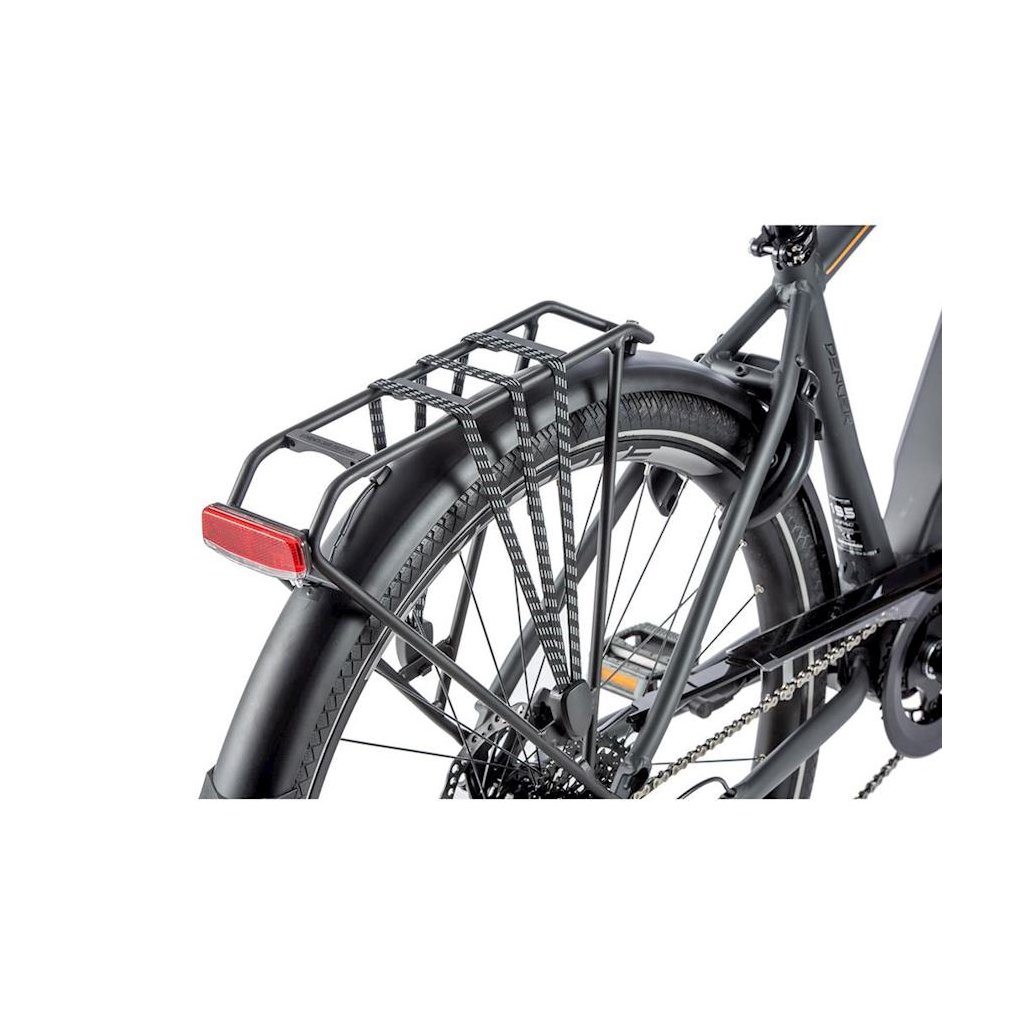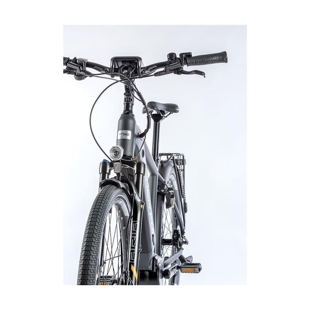 Trekingové elektrobicykel DENVER 2021 s hliníkovým rámom, športovým dizajnom, odpruženou prednou vidlicou, kotúčovými brzdami a rozmerom kolies 28 "a centrálnym motorom Bafang M300. Motor je vybavený integrovaným snímačom otáčok. Novinkou je plne integrovaná rámová batéria s výkonnými článkami LG s kapacitou 15Ah (540Wh). Ďalším plusom je rychlo nabíjačka s nabíjacím prúdom 3A. Vďaka ktorej sa výrazne skráti doba nabíjania batérie. Elektrobicykel je vybavené stredovým motorom Bafang M300 s nominálnym výkonom 250W a max. Výkonom 350W. Tento motor sa môže okrem iného pochváliť vysokým krútiacim momentom, ktorý môže dosiahnuť hodnotu až 80 Nm a je vybavený integrovaným snímačom otáčok. Elektromotor Bafang M300 sa rýchlo zaradil medzi zavedenými stredovými pohonmi predovšetkým vďaka svojmu kvalitnému spracovaniu. Ďalej vyniká veľmi plynulým chodom, nadpriemerným výkonom v stúpaní a tichým chodom. Systém sa ovláda pomocou LCD displeja a tlačidlového ovládača umiestneného na riadidlách.