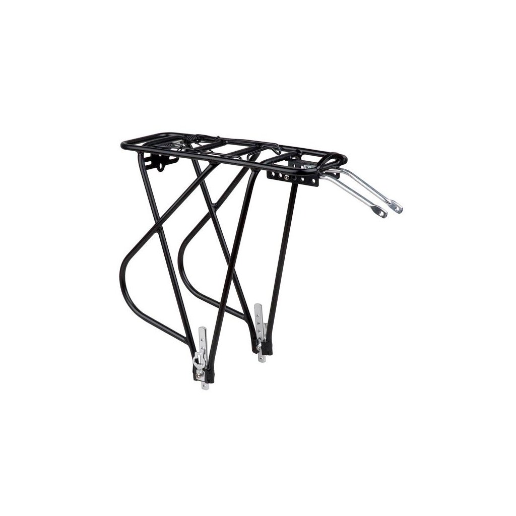 zadný univerzálny nosič s klapákem, 26 "-29", nastaviteľný na výšku, masívne duté duralové trubičky 10 mm, nosnosť 25 kg, držiak na odrazku (blikačku), váha: 750g