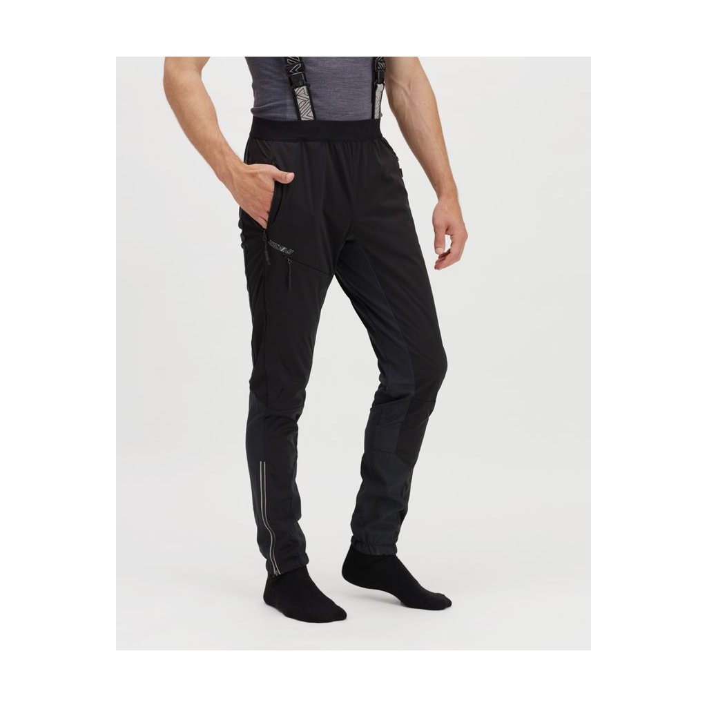 Pánske nohavice na bežky kombinujúce tenkú vetruodolnú membránu Quatroflex Plus na prednom diele s pružným a priedušným Powerthermom na zadnej časti. Nohavice majú dve predné vrecká a odnímateľné traky.