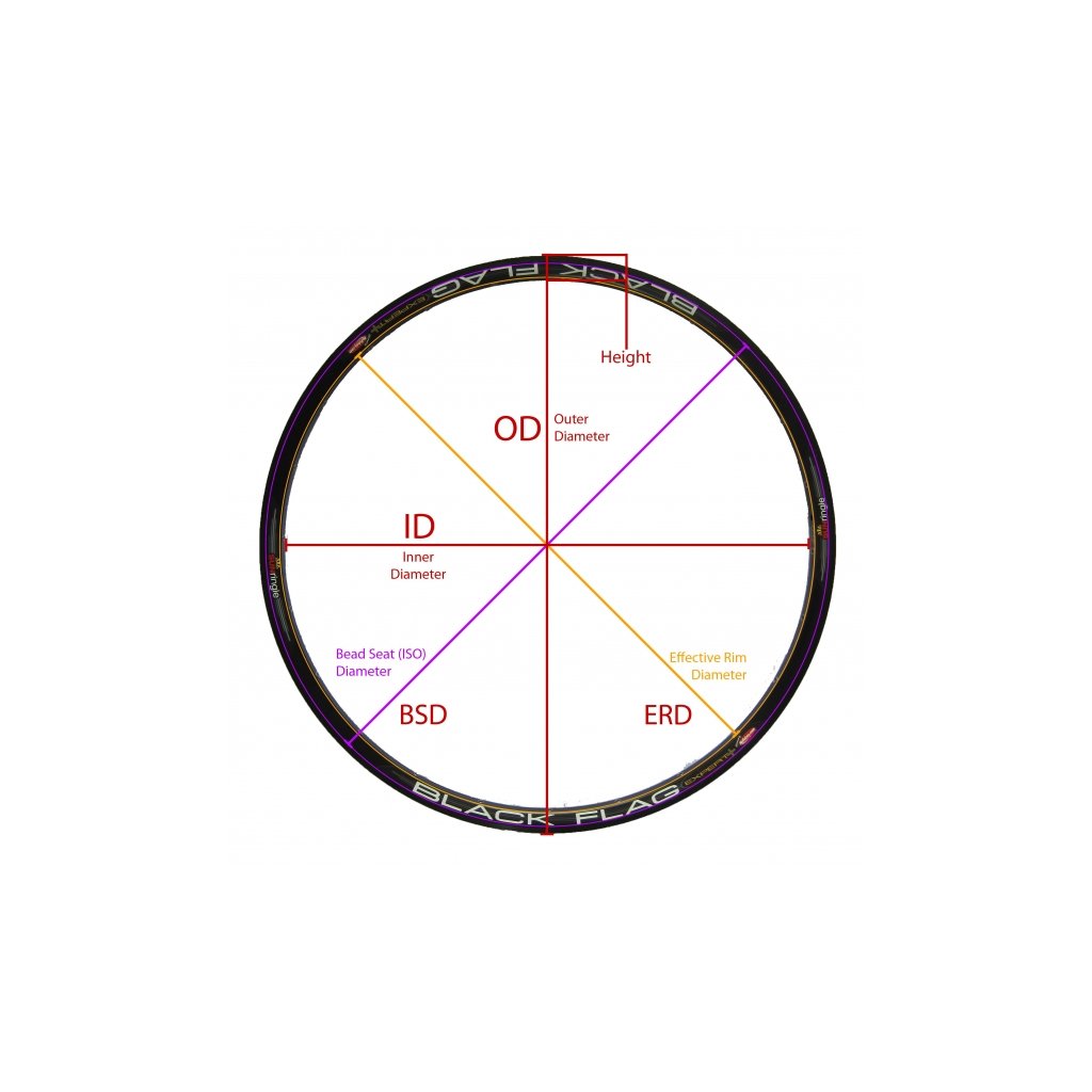 Výpočet pre rozmer 622: (hodnota ETRTO 622,3 mm (viď. Na uvedenom obrázku označené BSD). + 2x výška háku + 2x hrúbka steny chrbta - 2x výška ráfika (viď. Na uvedenom obrázku označené HEIGHT).