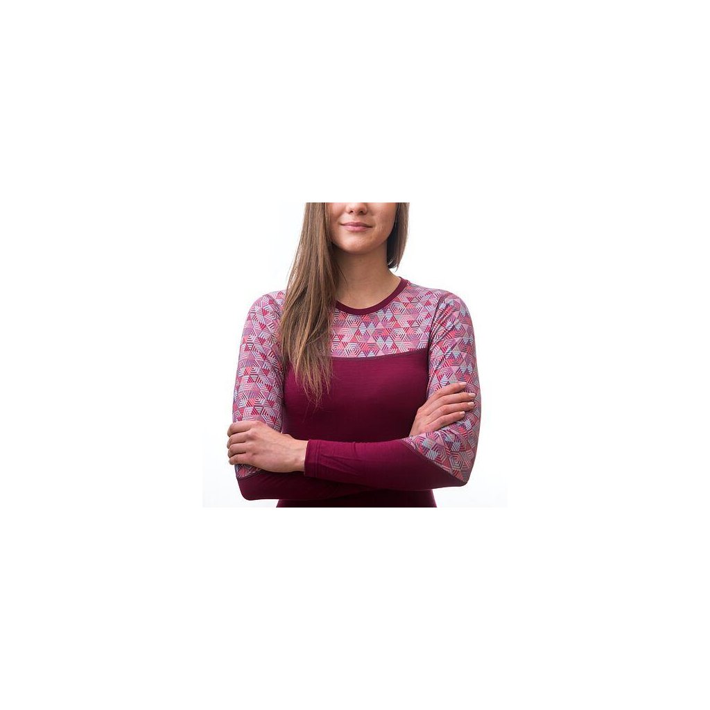SENSOR MERINO IMPRESS dámske tričko dl.rukávlilla / pattern